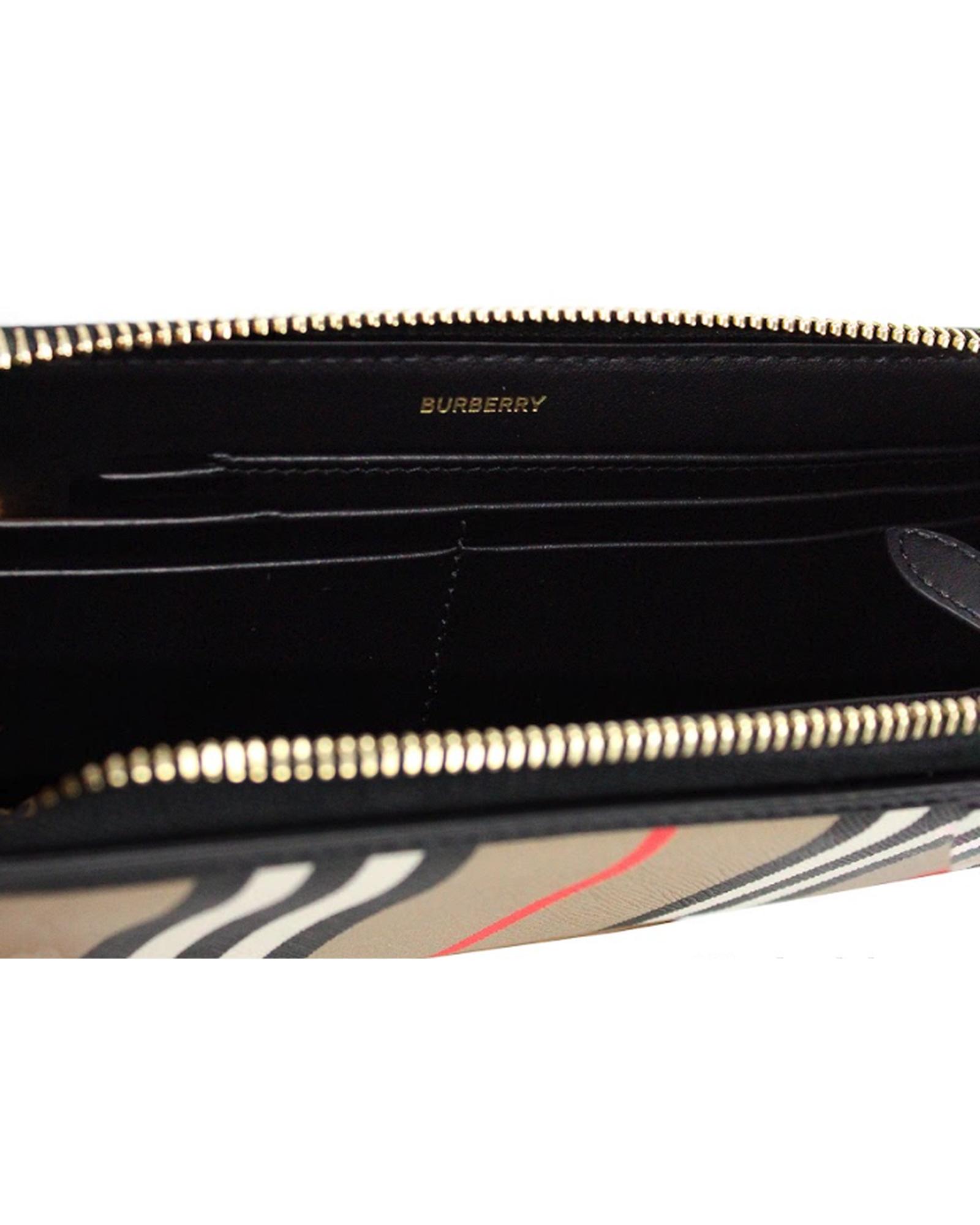 - Burberry Ellerby Black Icon Stripe Zip Around Continental Wallet