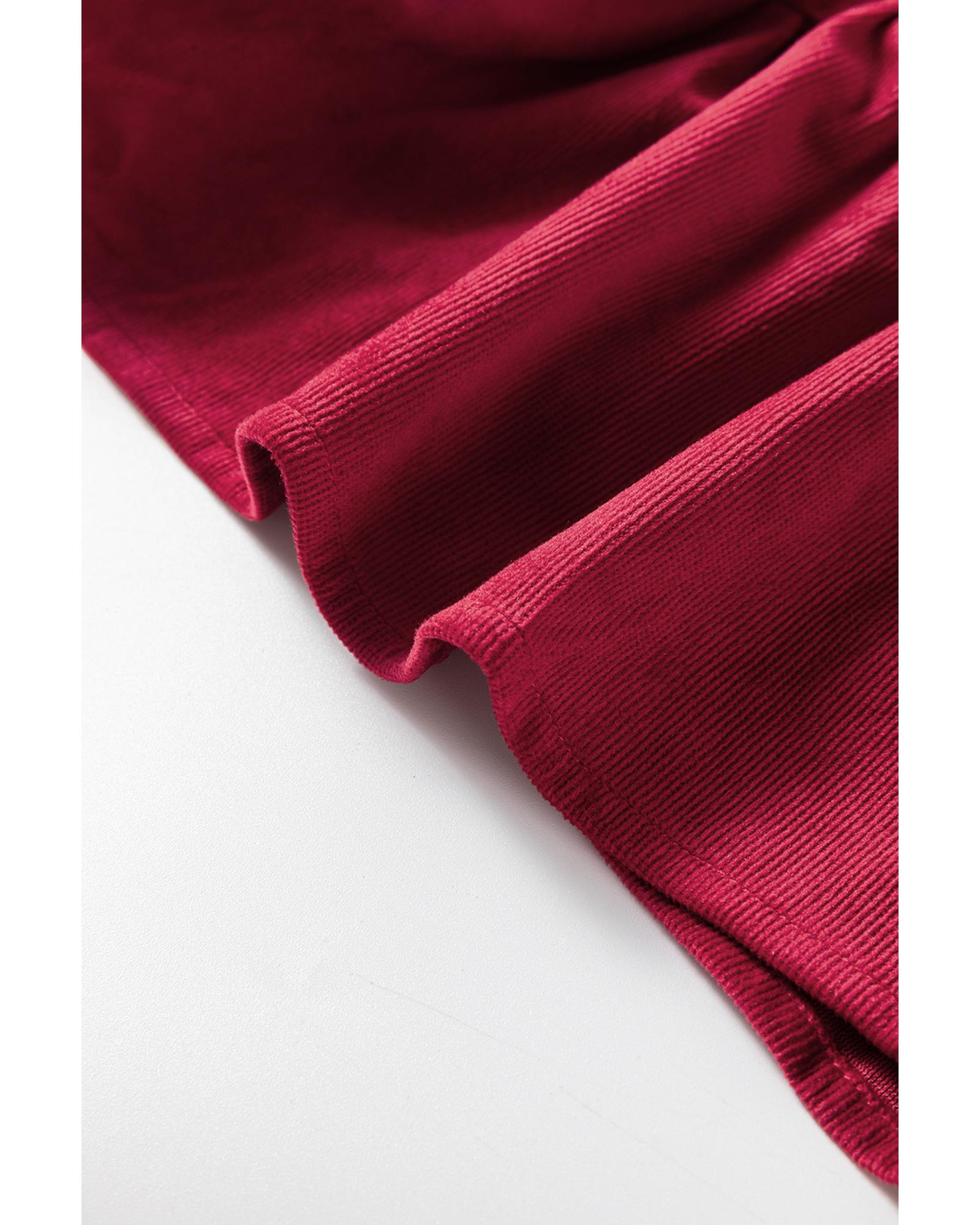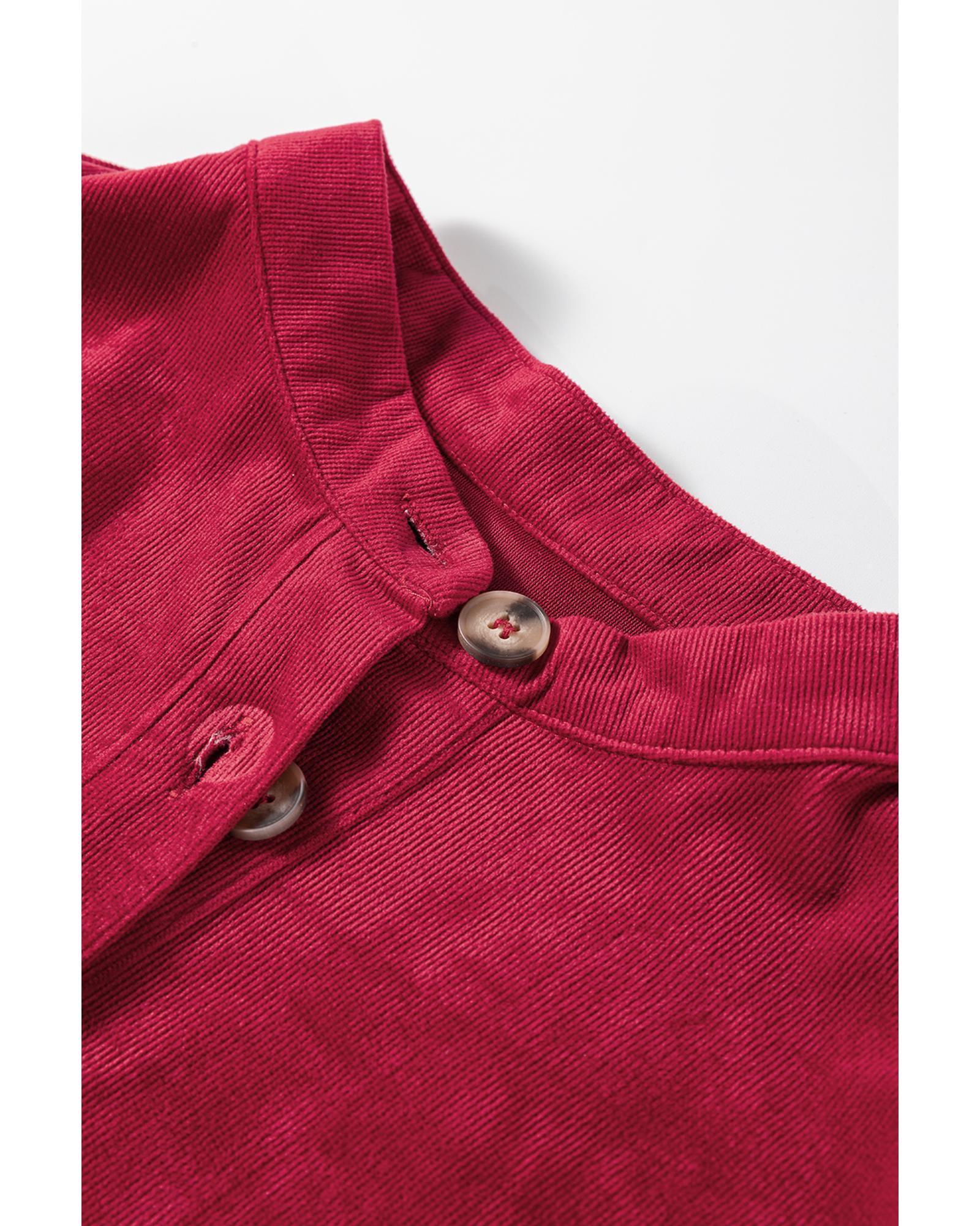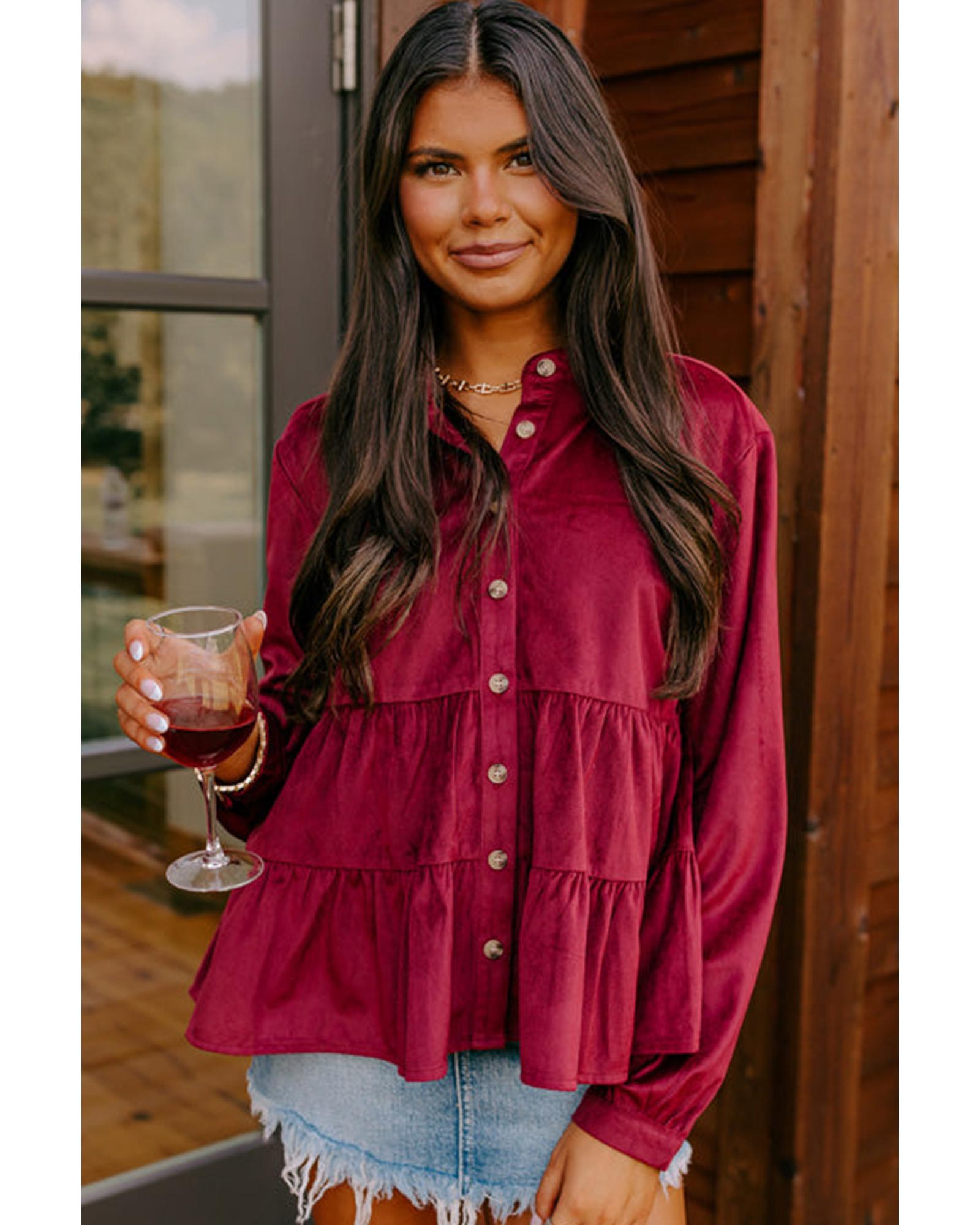 Burgundy Corduroy Ruffle Tiered Buttoned O Neck Shirt – XL