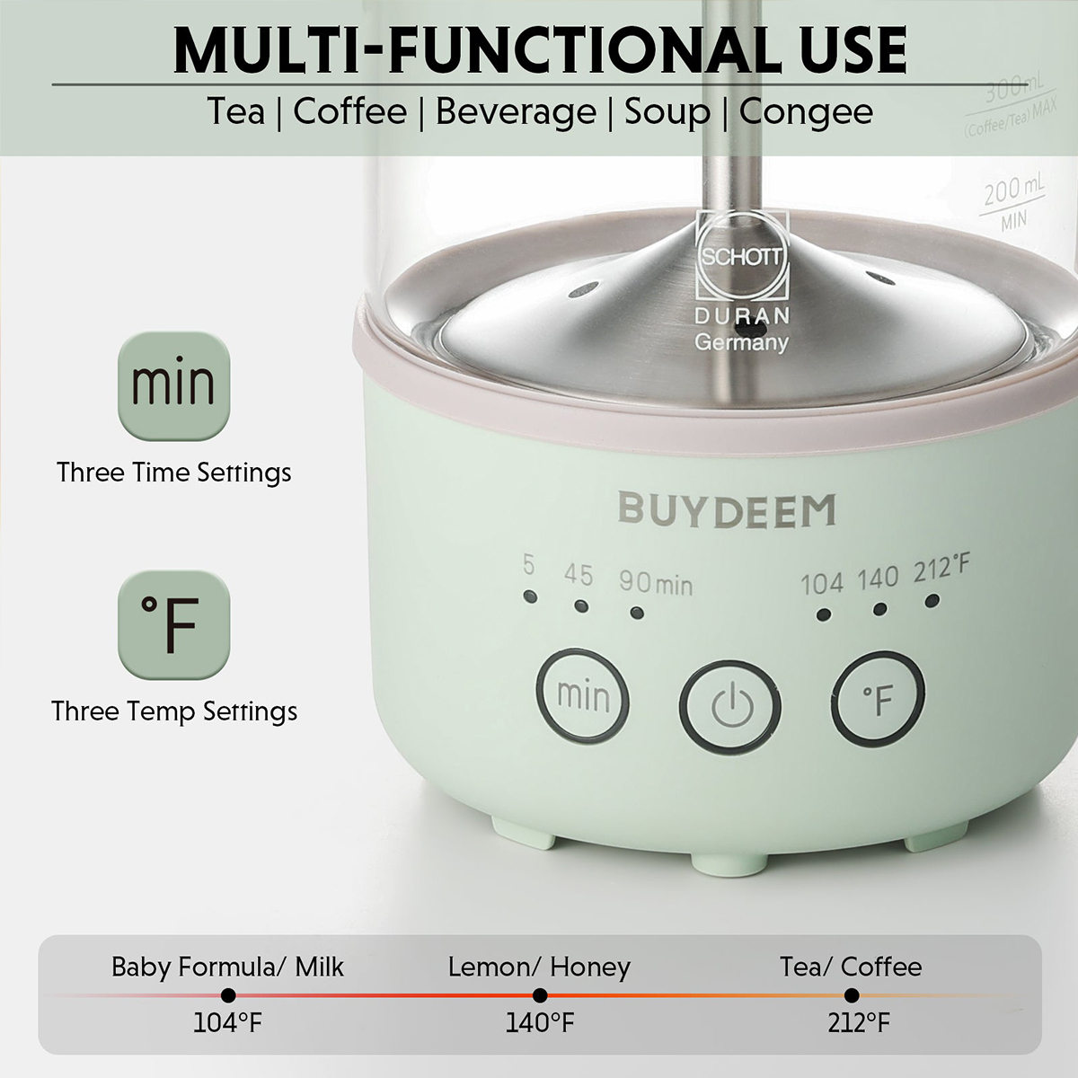 • Precise Cooking Control: Whether tea, coffee, cocoa, or even a bowl of oatmeal, the BUYDEEM K313 mini kettle enables stewing to be more precise and efficient while keeping the nutritional value and original taste of the ingredients.