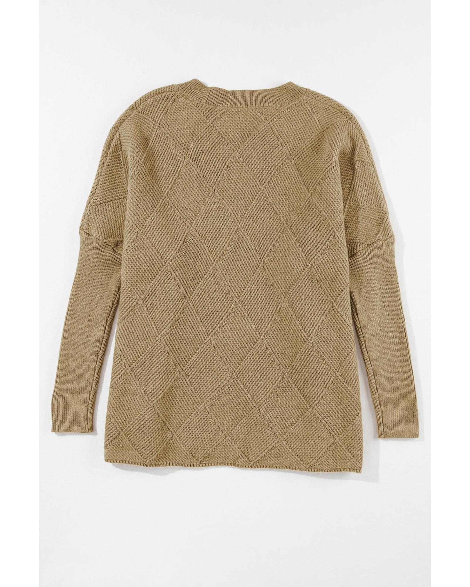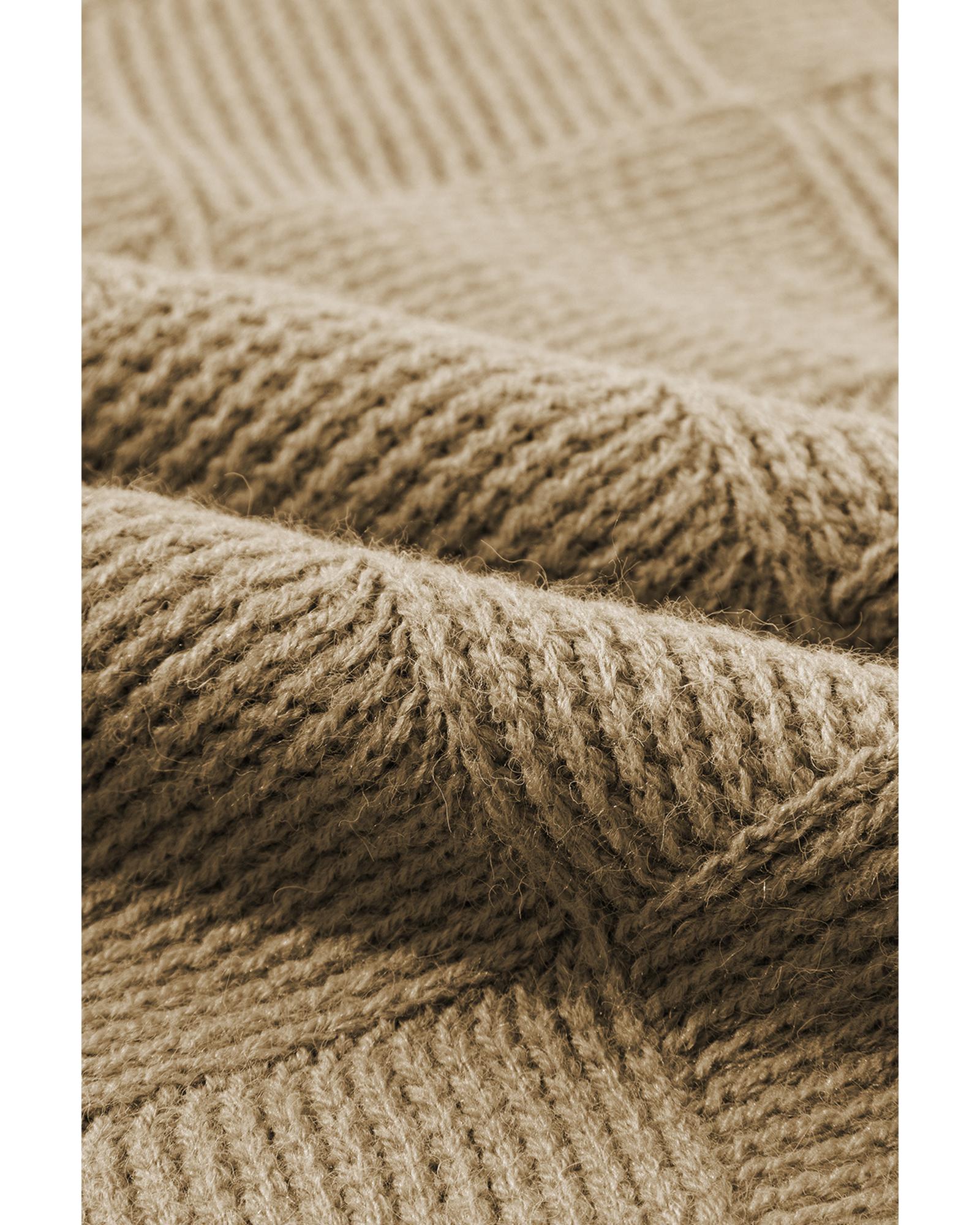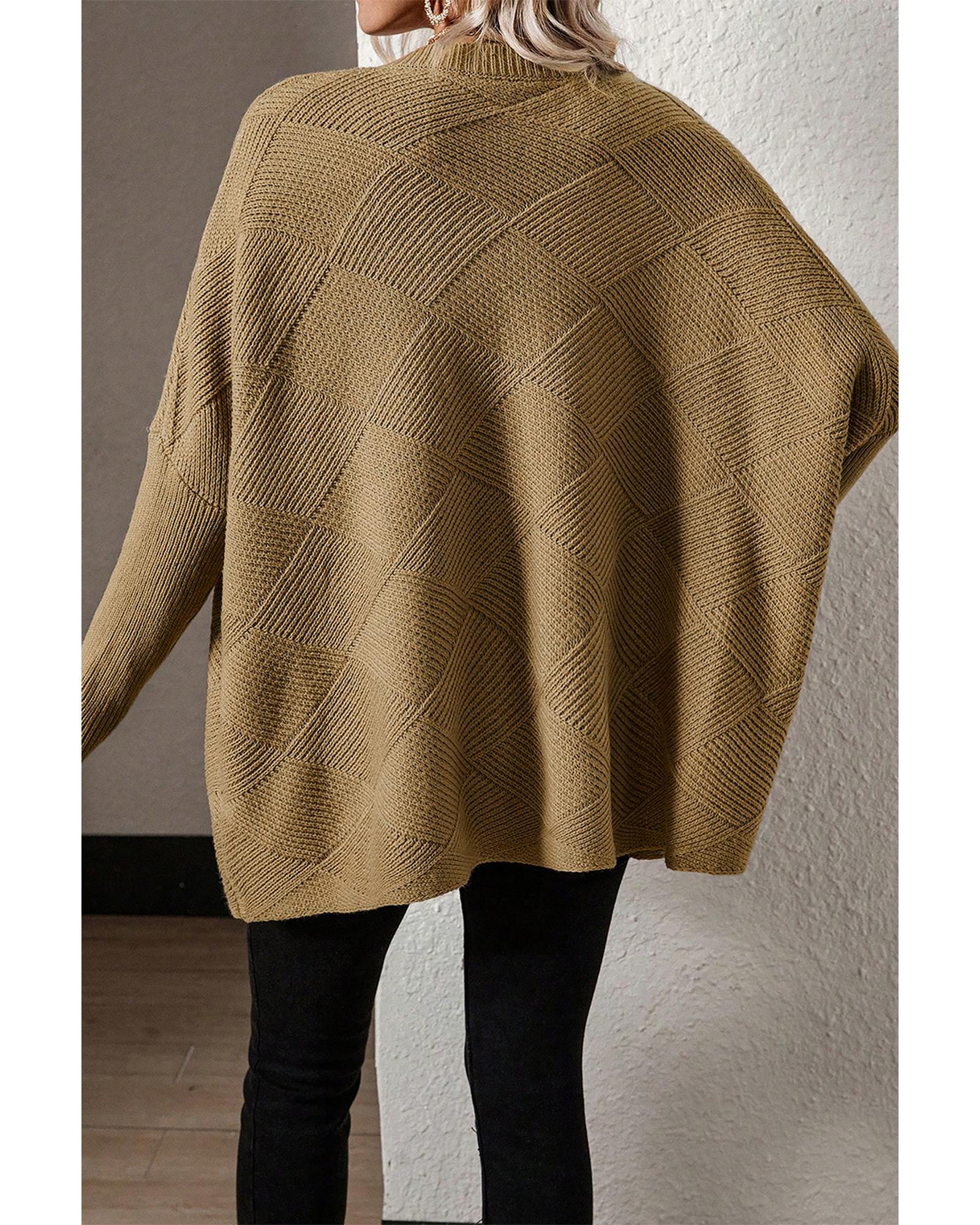 Camel Checkered Textured Batwing Sleeve Sweater – S