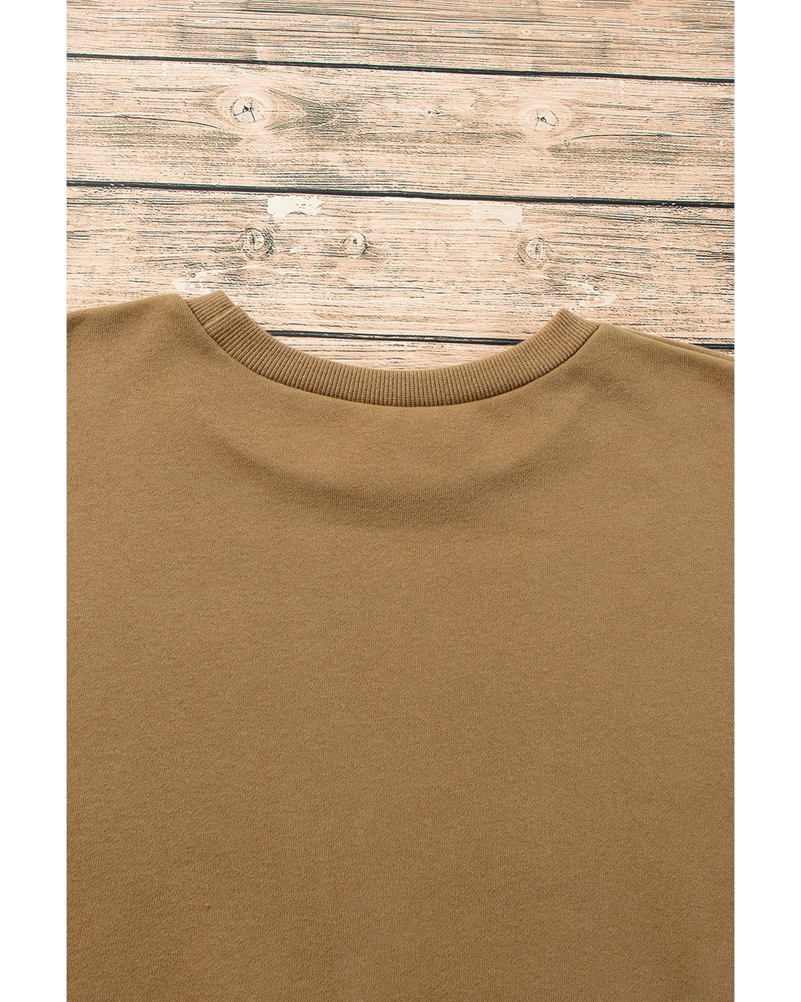 Camel Solid Fleece Lined Drop Shoulder High Low Sweatshirt – S