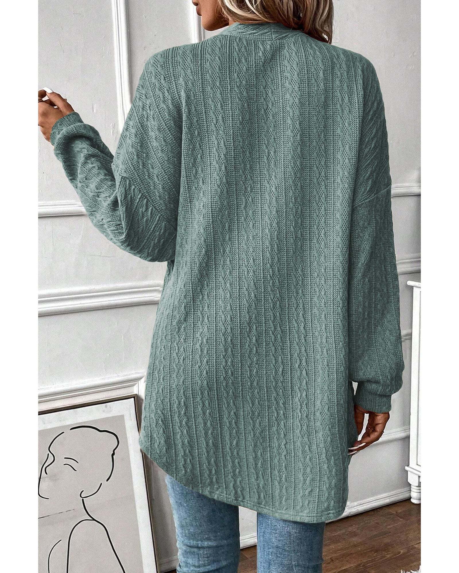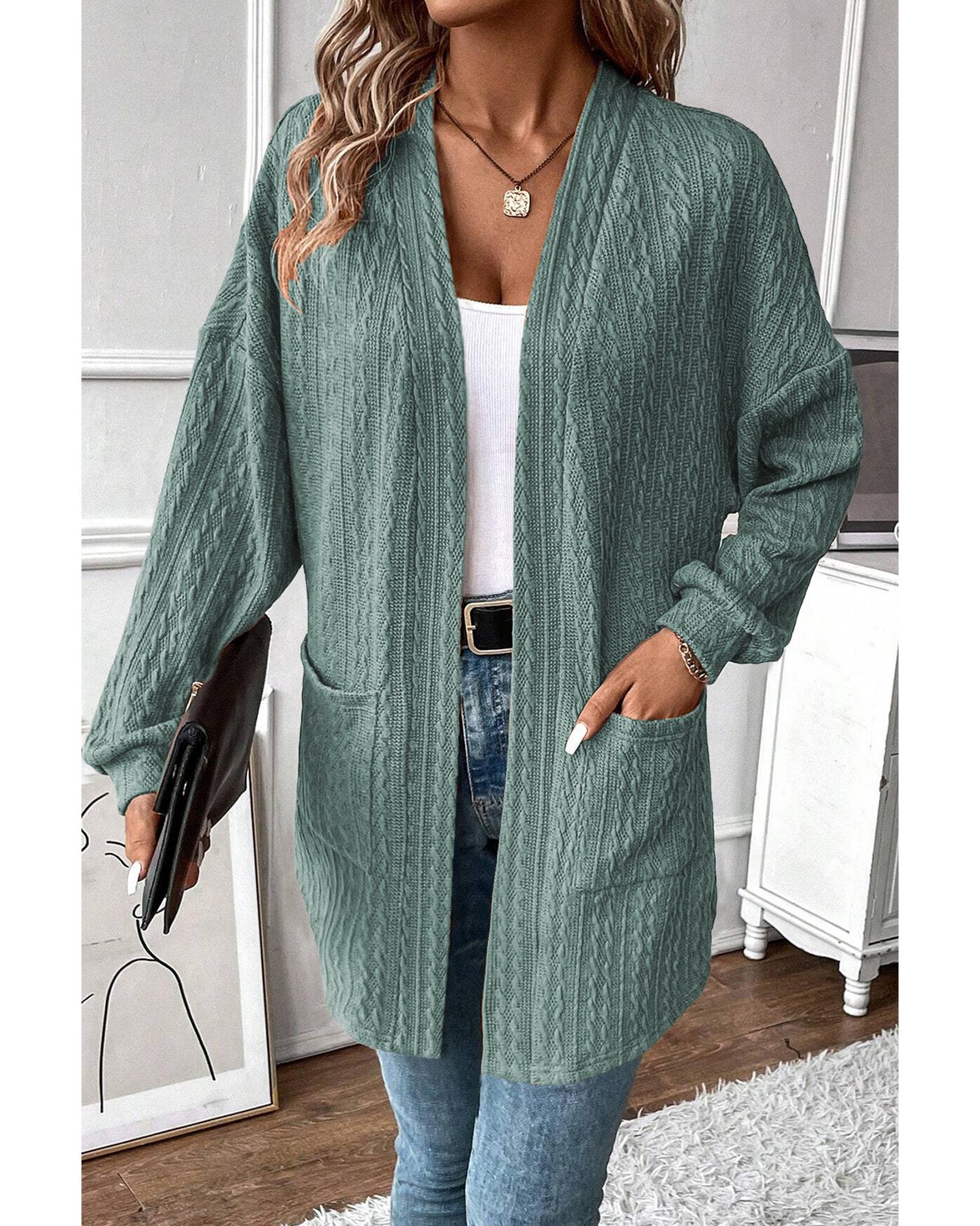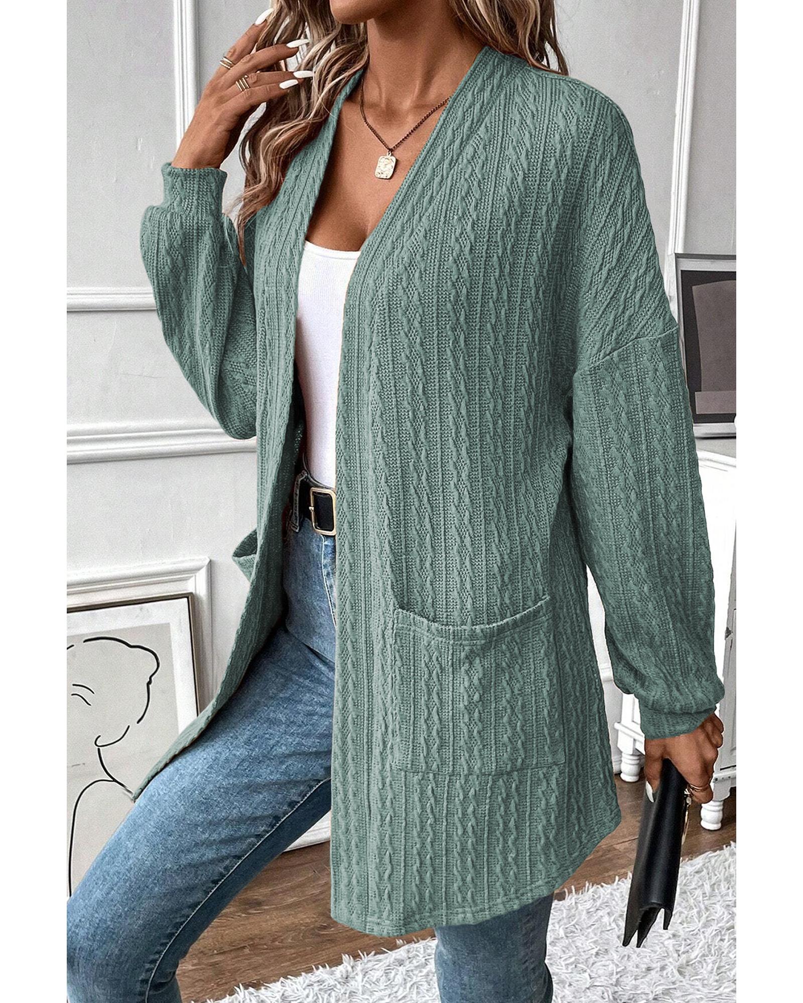 Canton Textured Knit Side Pockets Open Front Cardigan – M
