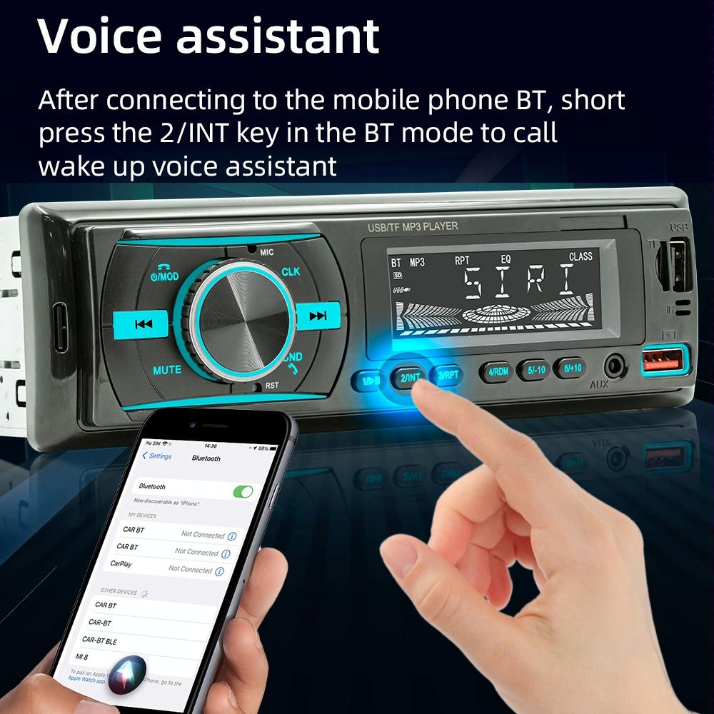 • 1 x Car Mp3 Player With Voice Assistant Fm – Colourful Lights Black