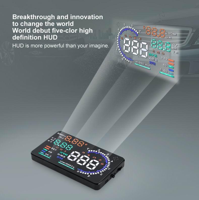 Car Obdii Hud Warning System 5.5 Inch Display Fuel Consumption Speed Alarm Water Temp Fault Diagnosis