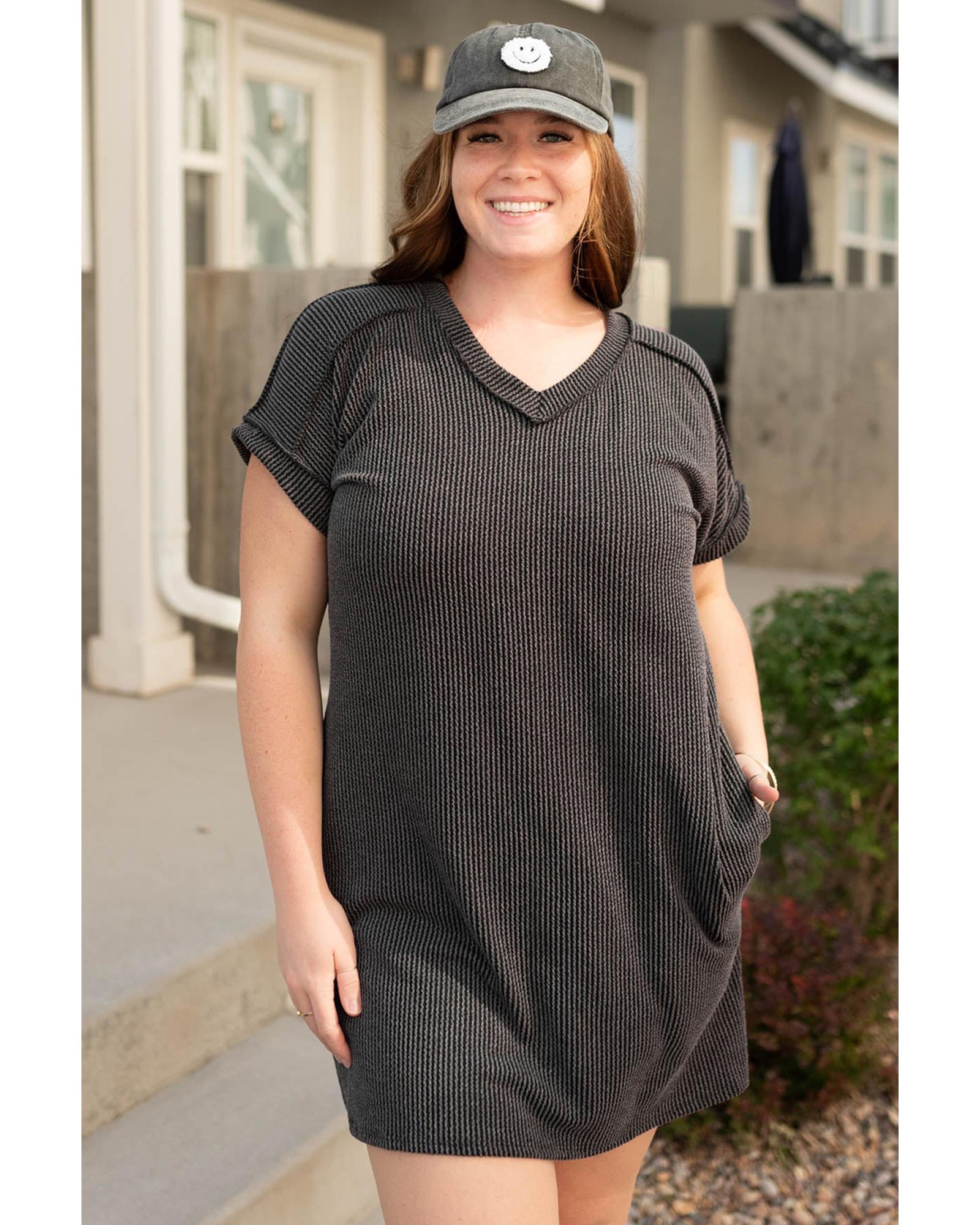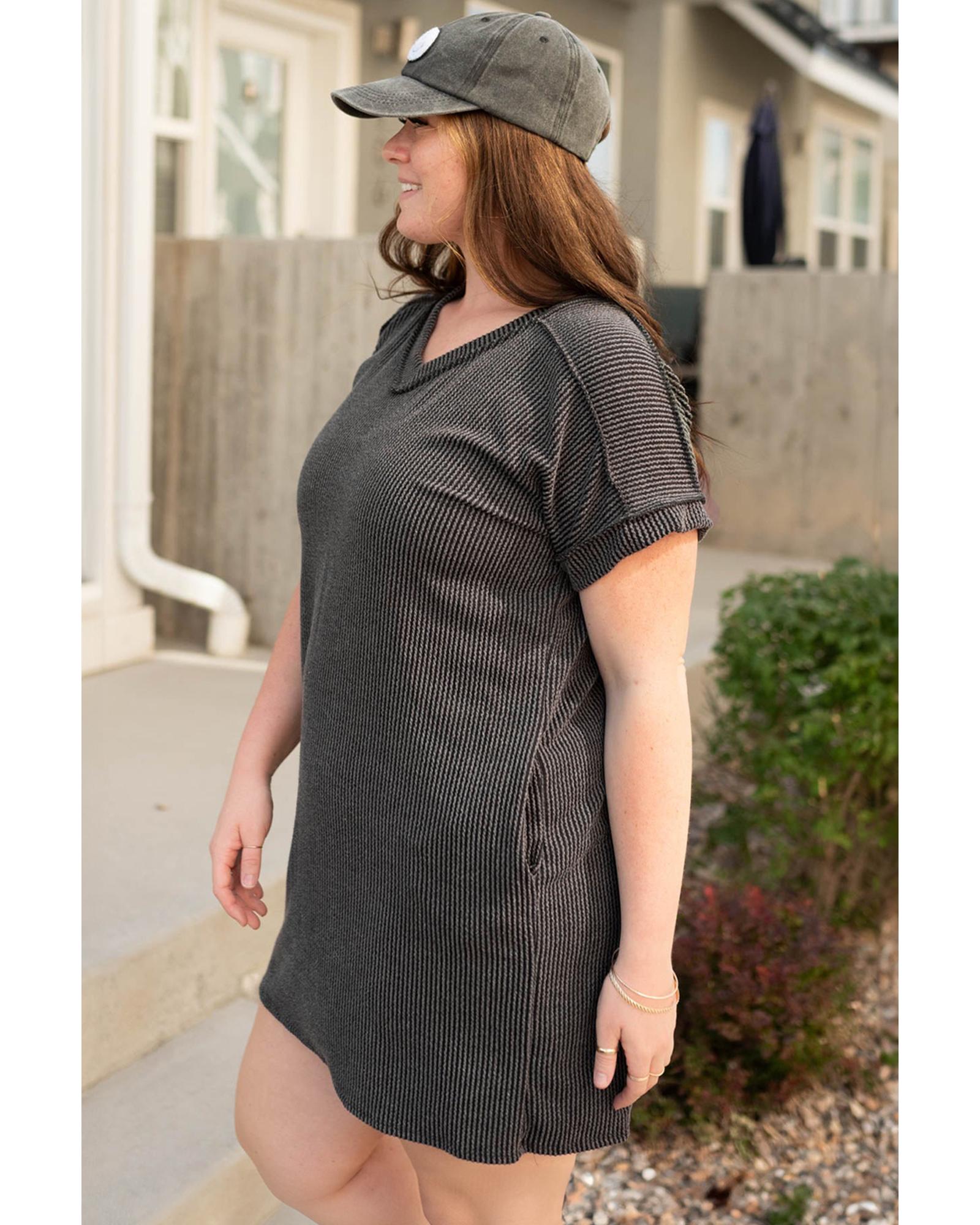 Carbon Grey Corded V Neck Plus Size T Shirt Dress with Pockets - 1X Original price was: $64.99.Current price is: $34.99.