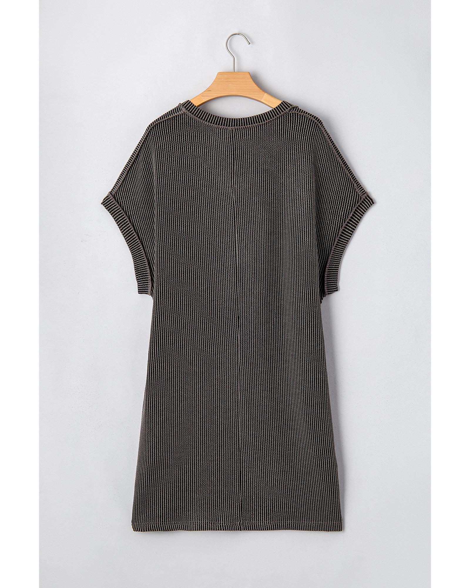 Carbon Grey Corded V Neck Plus Size T Shirt Dress with Pockets - 3X