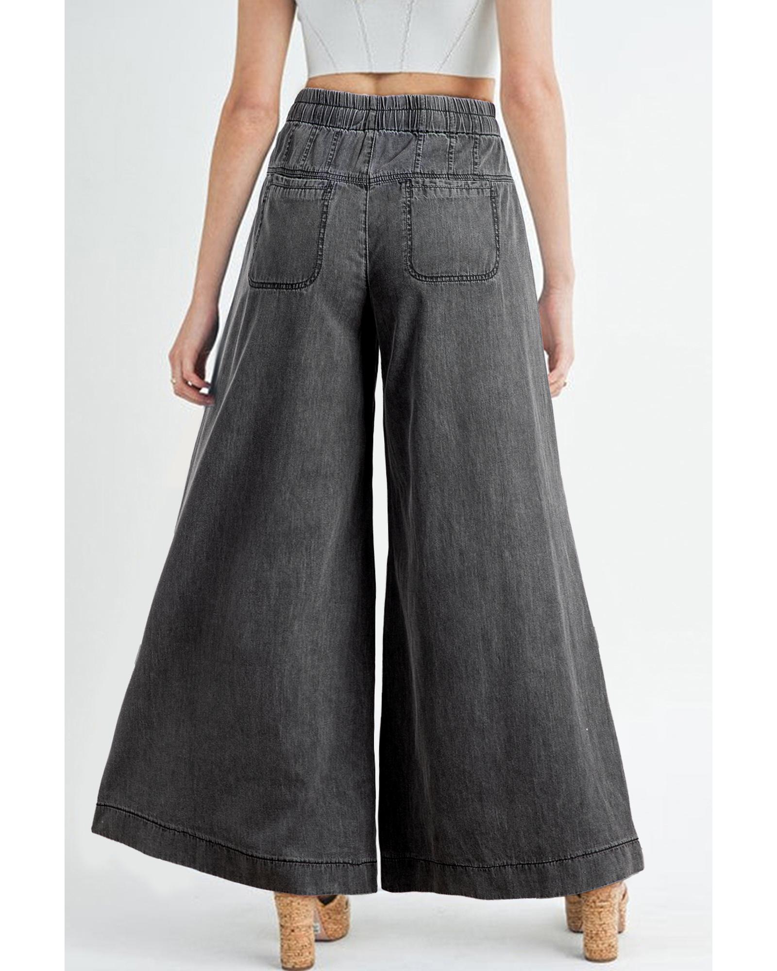 Carbon Grey Mineral Wash Button Fly Waist Wide Leg Jeans – 14 US