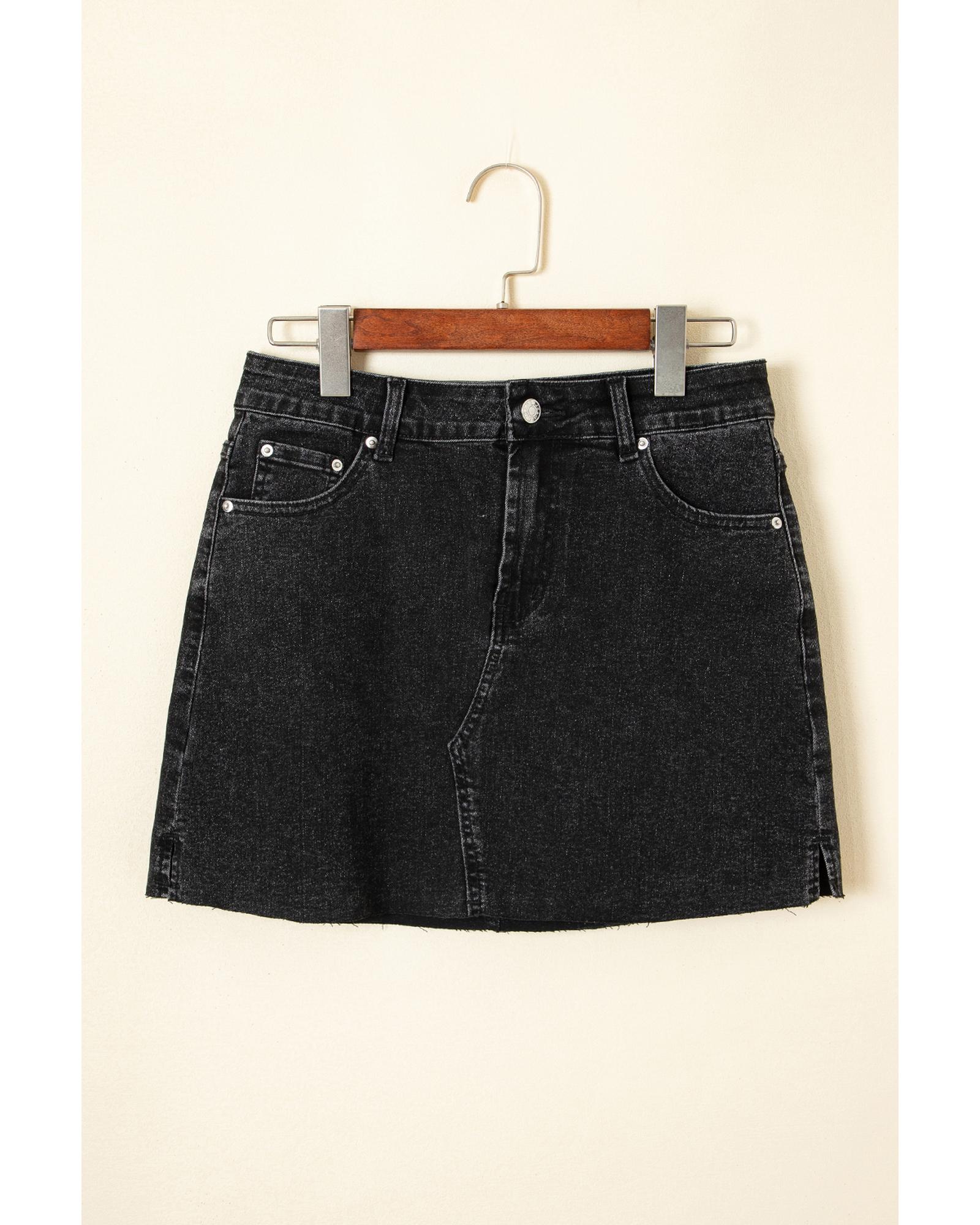 Carbon Grey Mineral Wash Ripped Raw Hem Denim Mini Skirt – 14 US