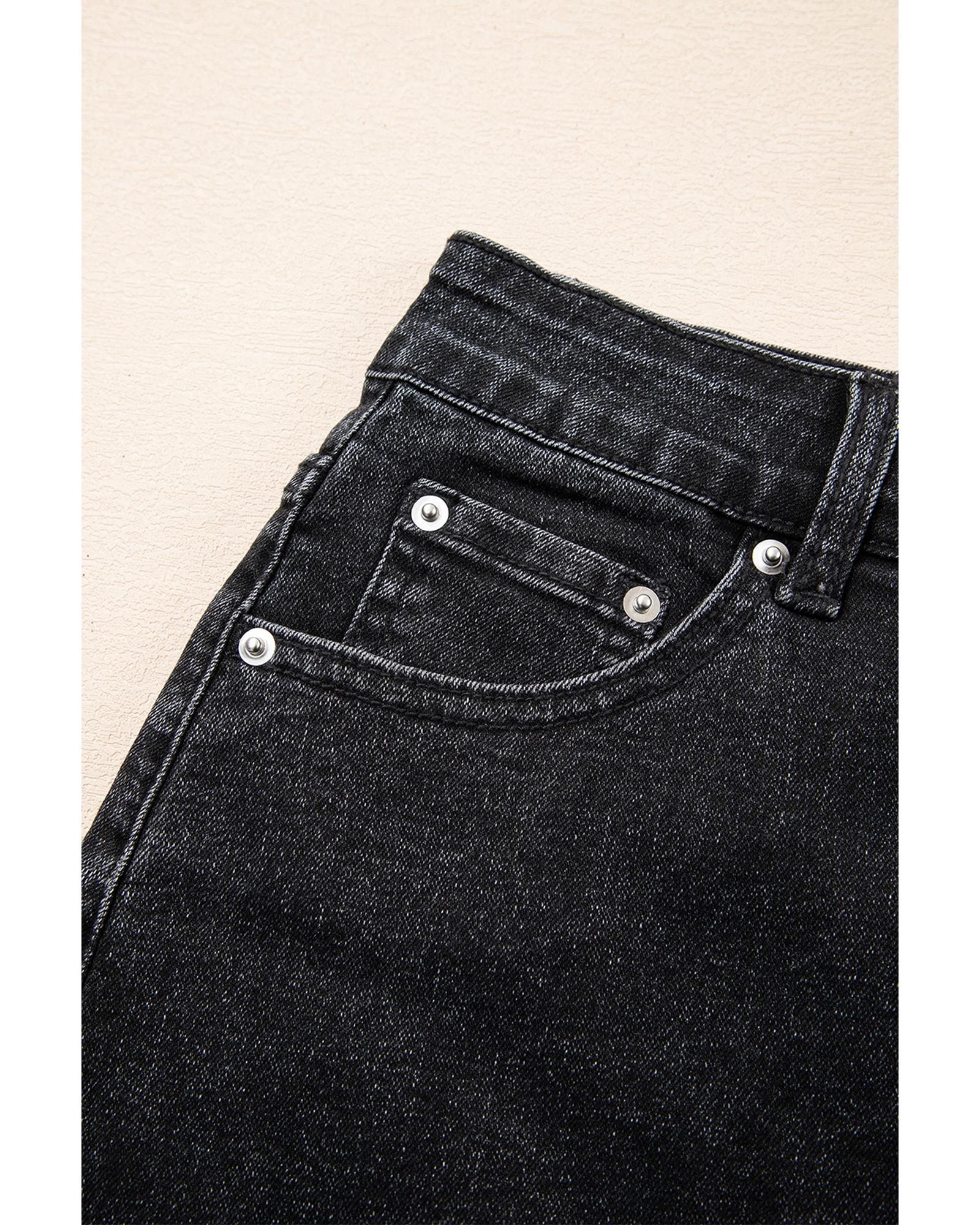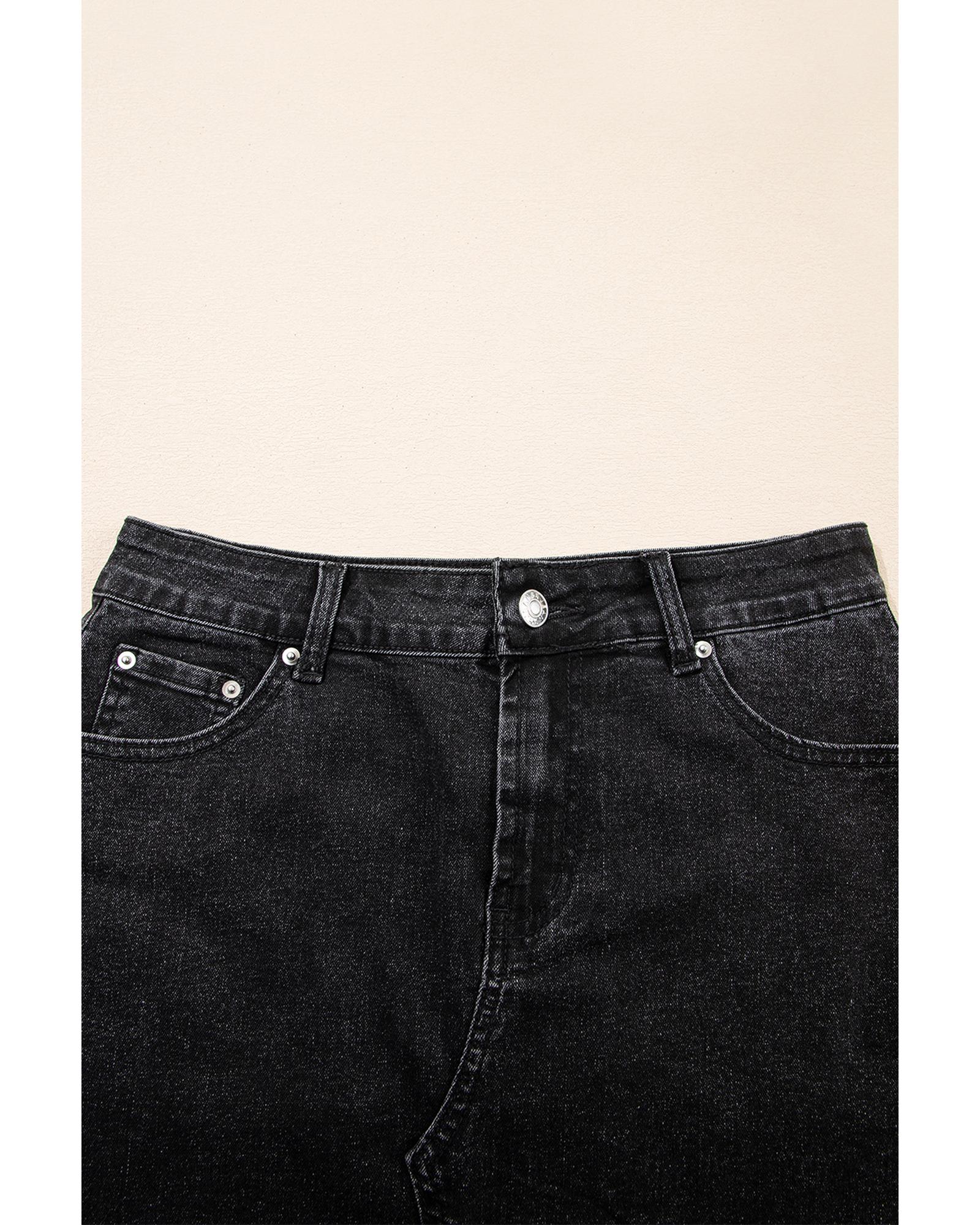 Carbon Grey Mineral Wash Ripped Raw Hem Denim Mini Skirt – 8 US