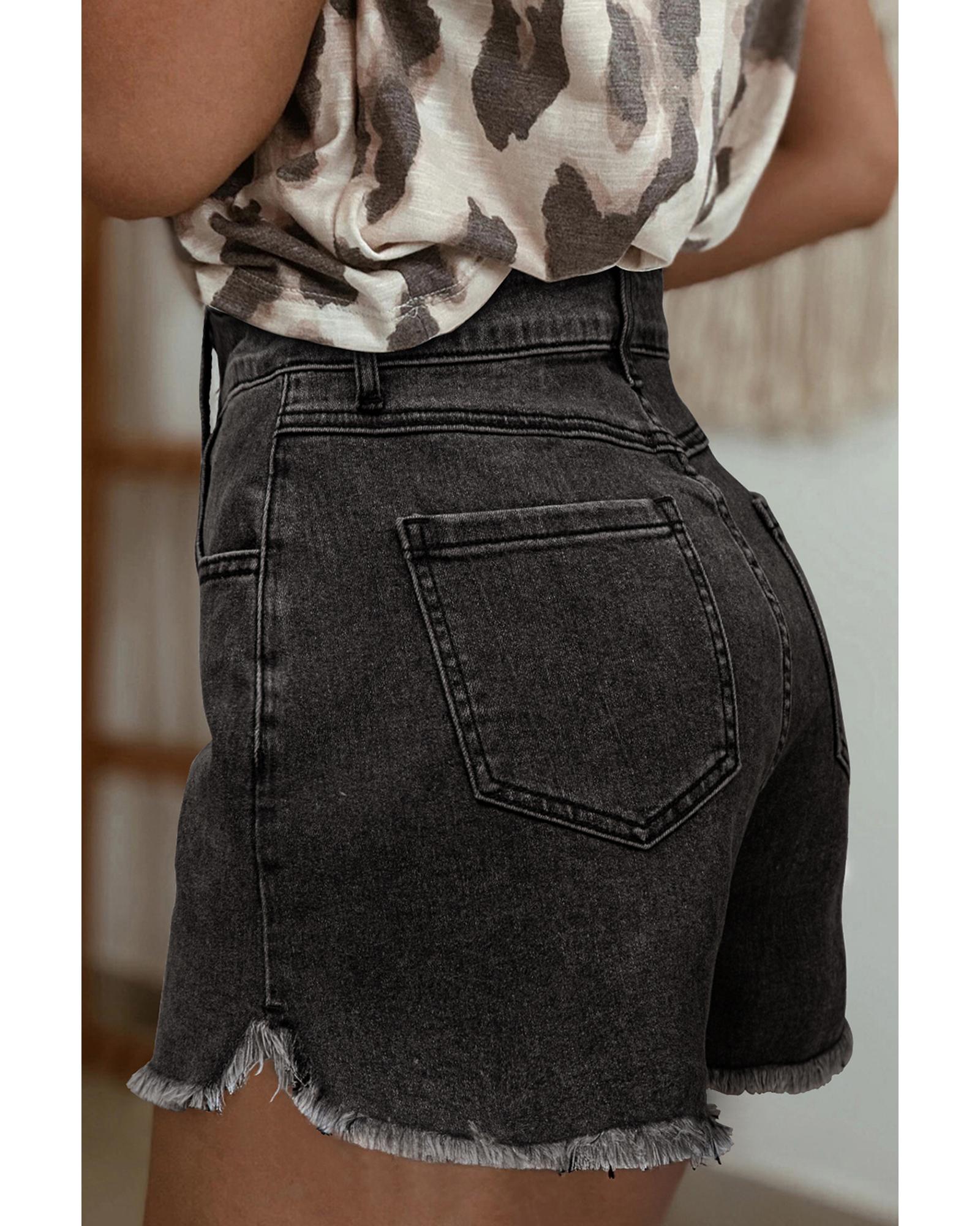 Carbon Grey Raw Hem High Waist Denim Shorts – 12 US