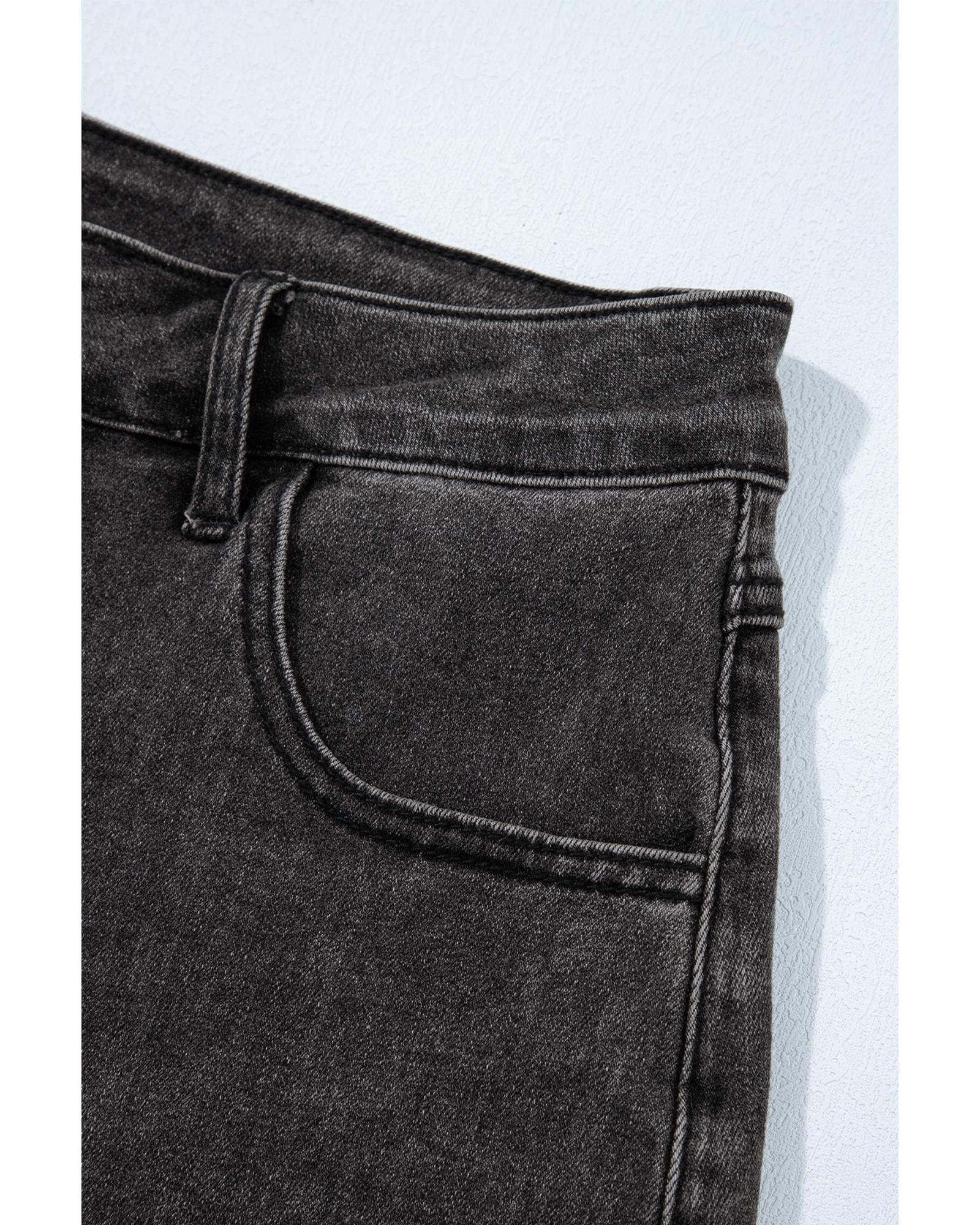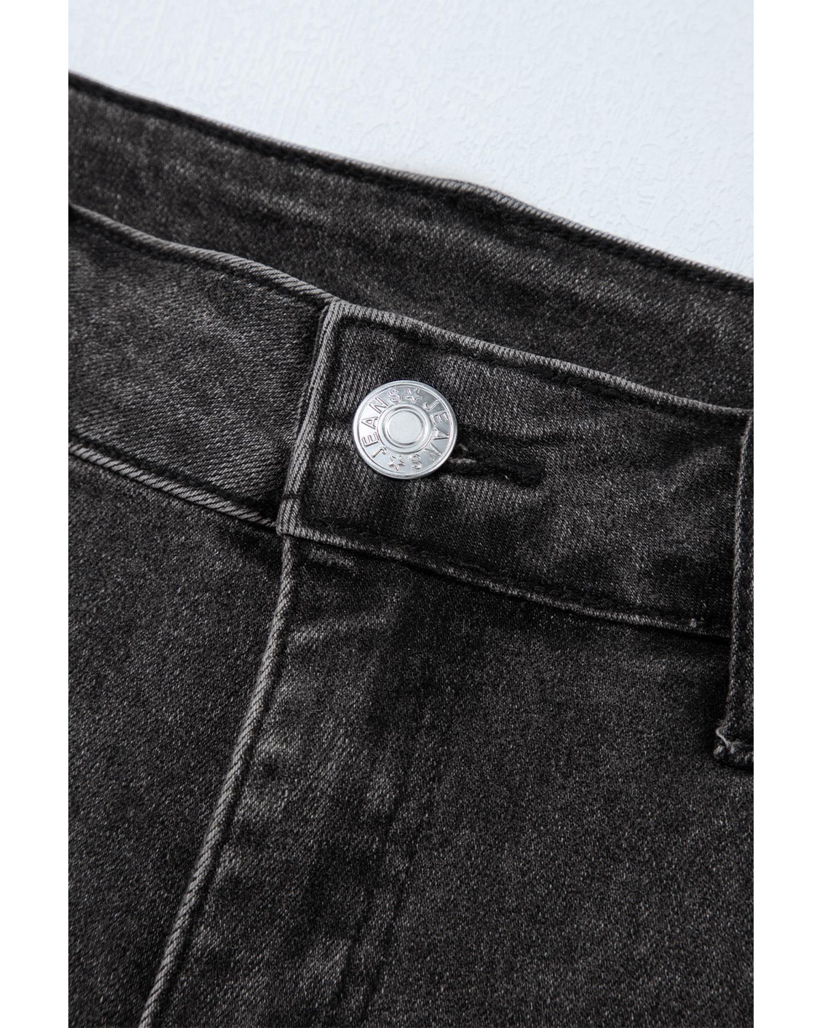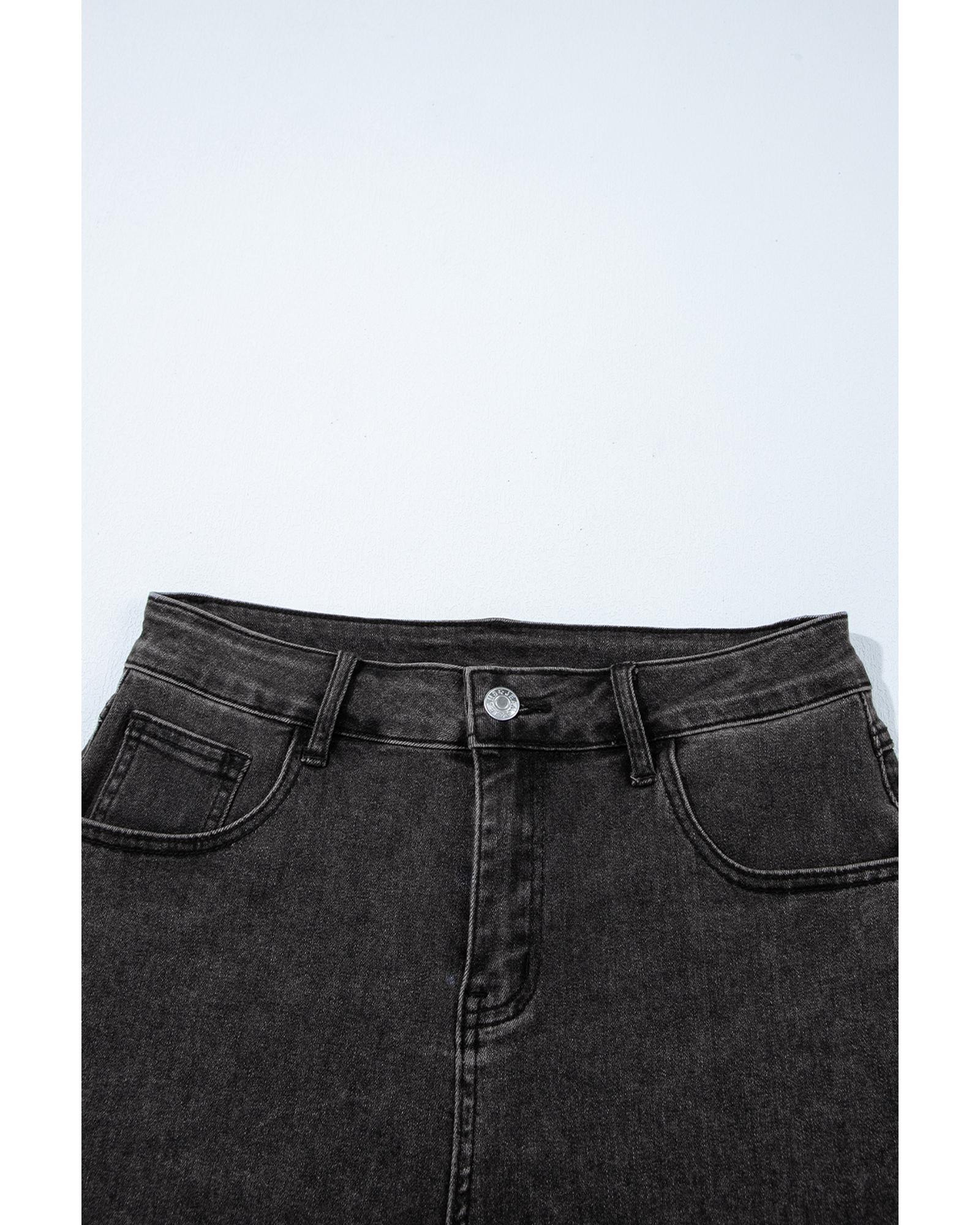 Black Side Pockets Frilled Smocked High Waist Wide Leg Jeans - L