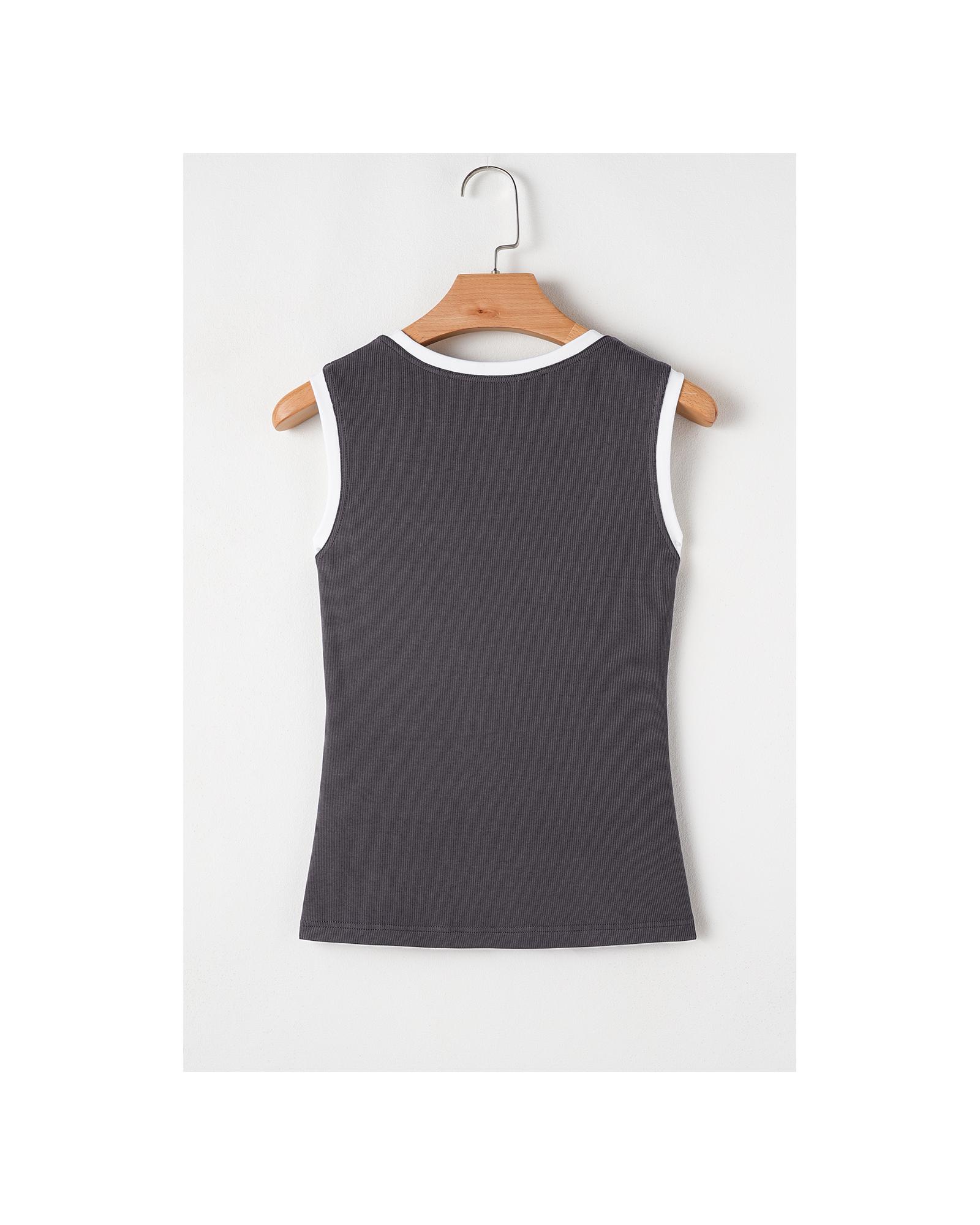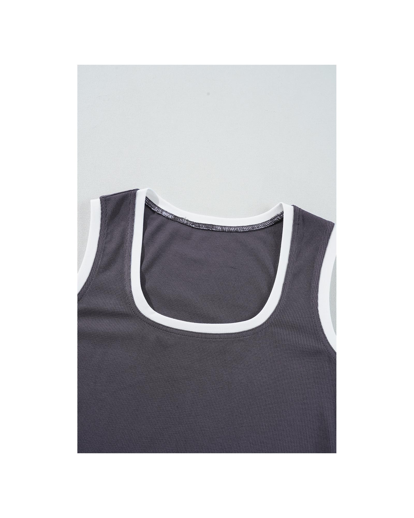 Carbon Grey Ribbed Knit Colorblock Edge U Neck Slim Fit Tank Top – XL