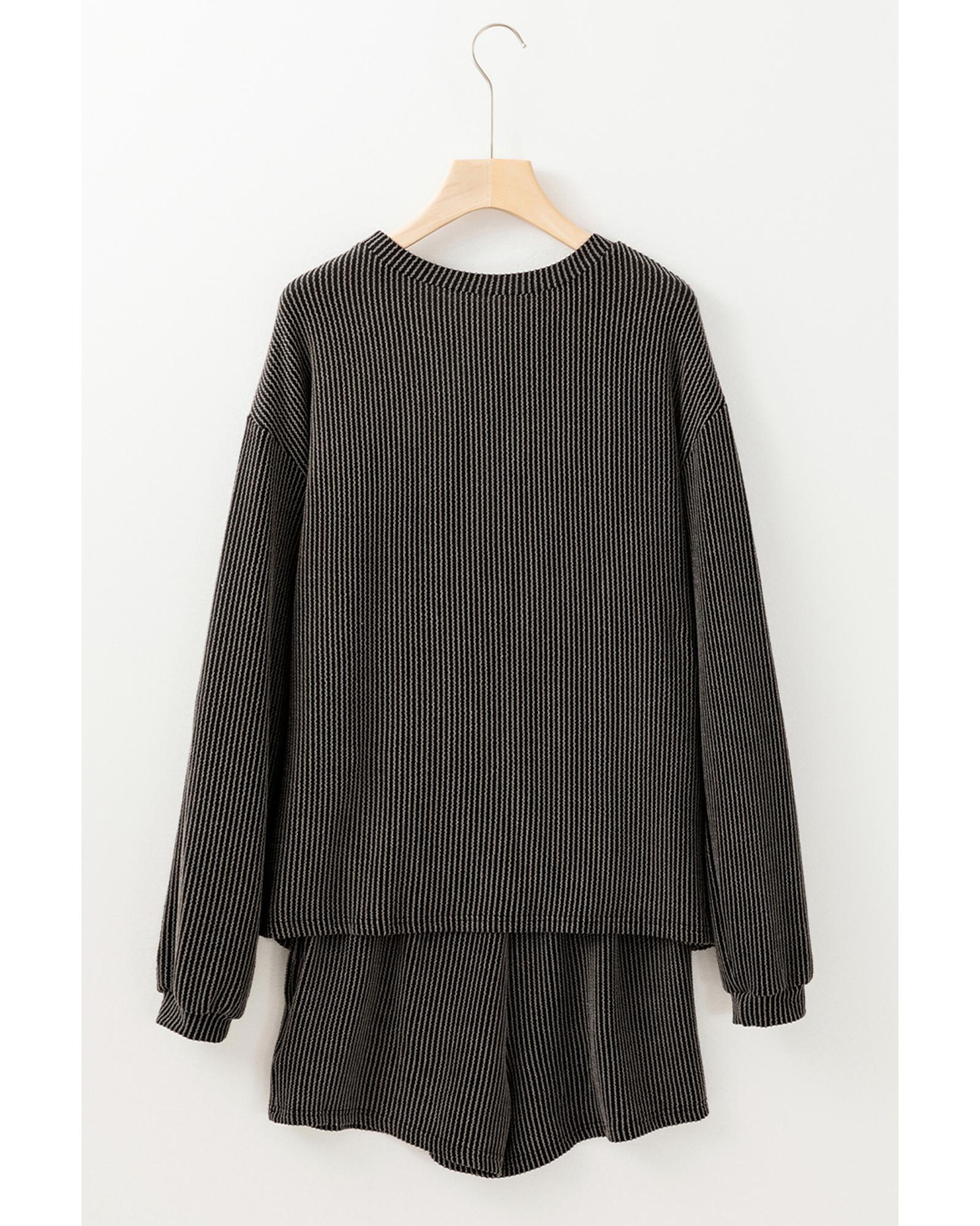 Carbon Grey XOXO Heart Patched Pattern Long Sleeve Corded Shorts Set – L