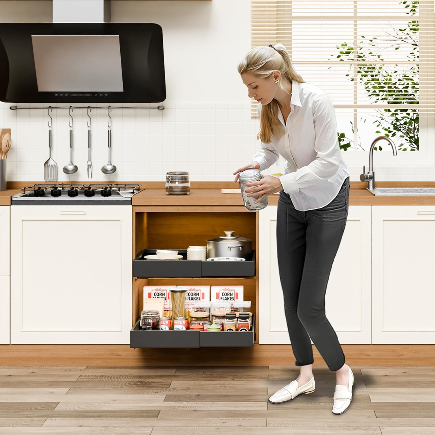 - HEAVY-DUTY BUILD & SMOOTH GLIDE: Crafted from premium carbon steel with a 3-rail damping slide system, these organizers handle up to 65 lbs per shelf. The drawers glide smoothly and quietly even under heavy pots, appliances, or pantry essentials.