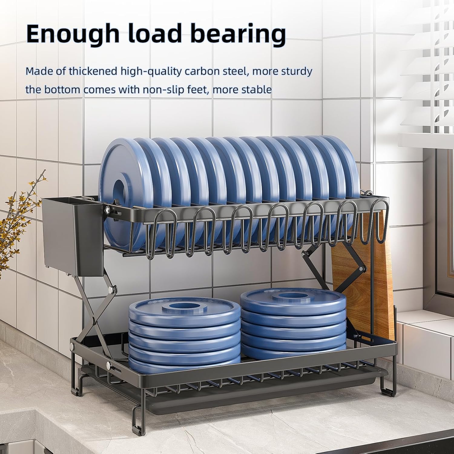 - 2-TIER LARGE CAPACITY DESIGN: Maximize your countertop space with a double-layer structure that holds up to 13 plates on the top rack and 22 bowls on the lower tier. Additional zones accommodate cups, utensils, and cutting boards — perfect for compact kitchens.