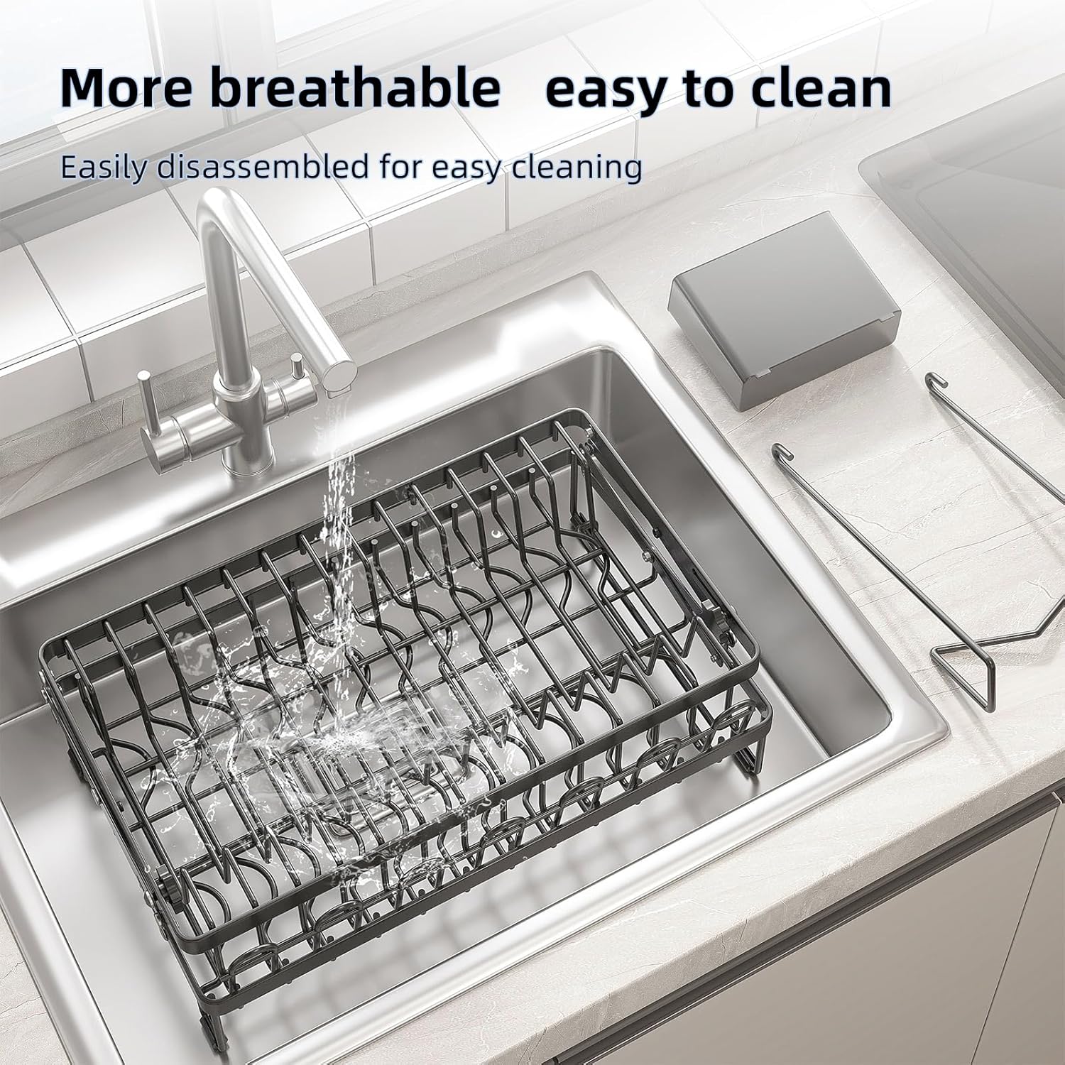- RUSTPROOF & STURDY BUILD: Constructed from premium carbon steel with a sleek black coating, this dish drying rack resists rust, supports heavy loads, and stays wobble-free thanks to its reinforced triangular frame.
