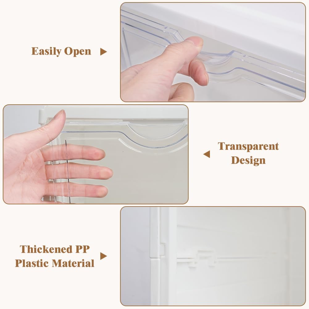 • CLEAR FRONT DOOR FOR EASY VIEWING: Each box features a transparent drop-front door, allowing you to quickly identify the pair you need without opening every box. Perfect for displaying sneakers, heels, or everyday footwear.