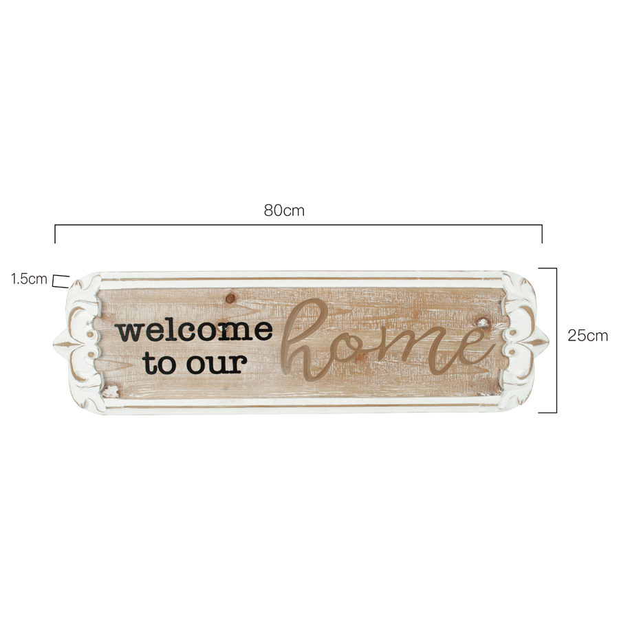 Carved ‘Welcome to Our Home’ Wall Art 80x25cm