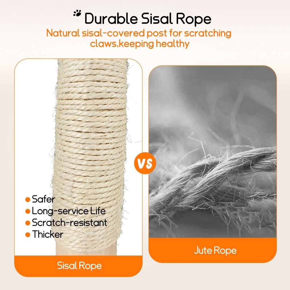 • Comfort Meets Fun: Equipped with plush cushions, sisal posts, and playful dangling balls, ensuring a blend of comfort and entertainment.