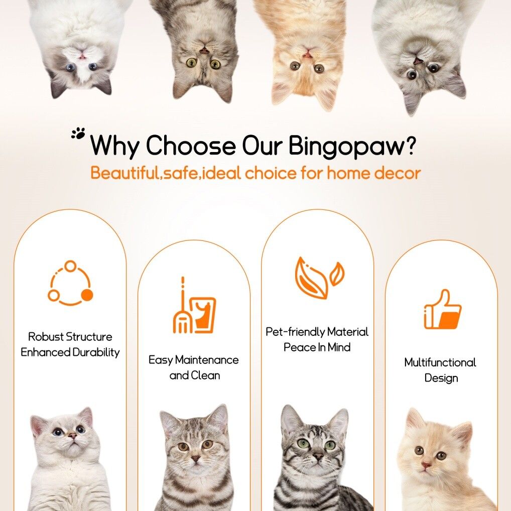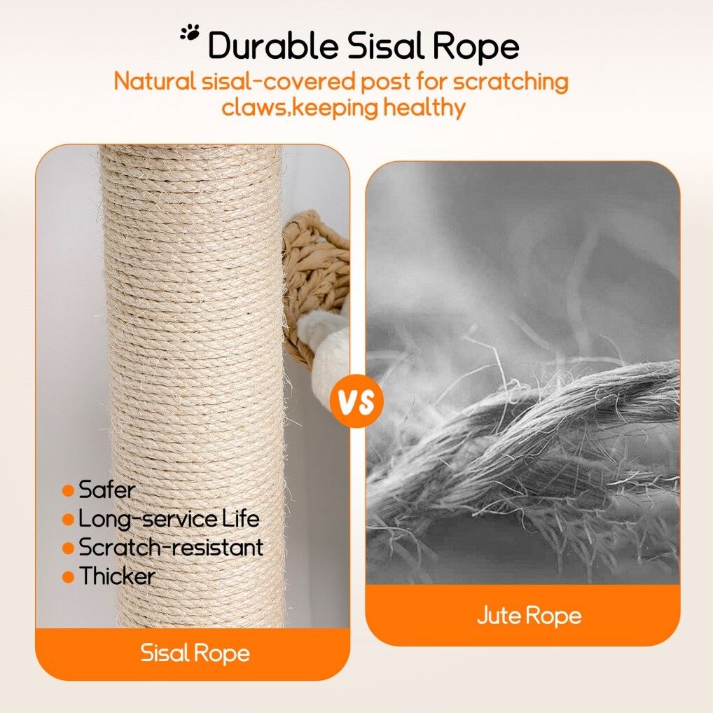 - Protect Your Furniture: Equipped with pet-safe sisal rope posts that satisfy natural scratching instincts and help maintain claw health, saving your furniture.