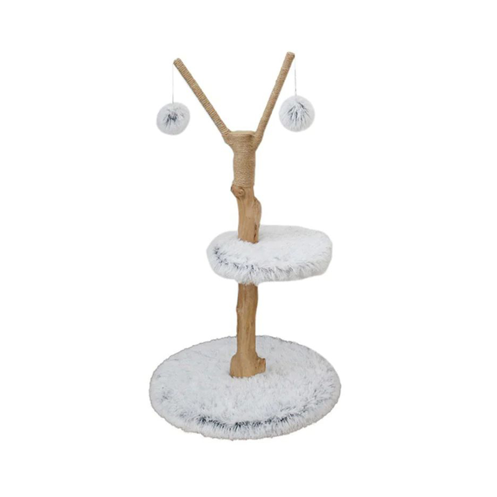 Catio Pure Single Level Cat Resort is a scratcher and cat bed combined into one. Made to look like a personal cat’s resort, it has a plush resting platform you can have on any floor of your home, with two scratching posts made from high quality jute twine and a hanging toy with a fluffy ball for additional playtime fun. Let your cat explore their new cat furniture or new hang out spot.