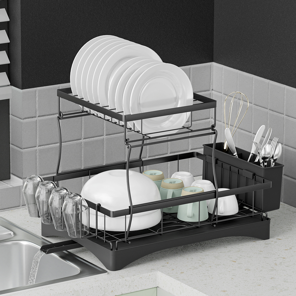 Cefito Dish Rack Expandable Drying Drainer Cutlery Holder Tray Kitchen 2 Tiers