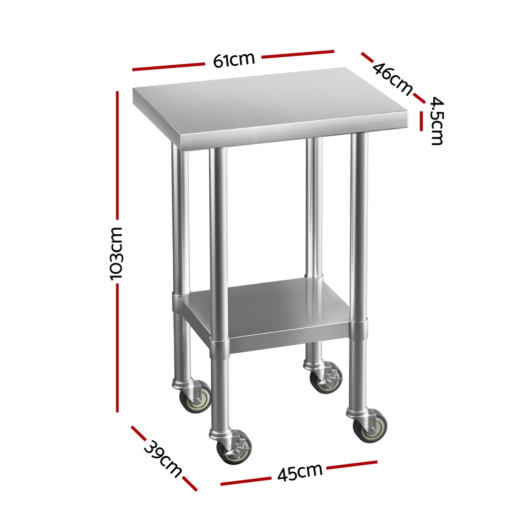 Cefito Stainless Steel Kitchen Benches Work Bench Wheels 61X46CM 430