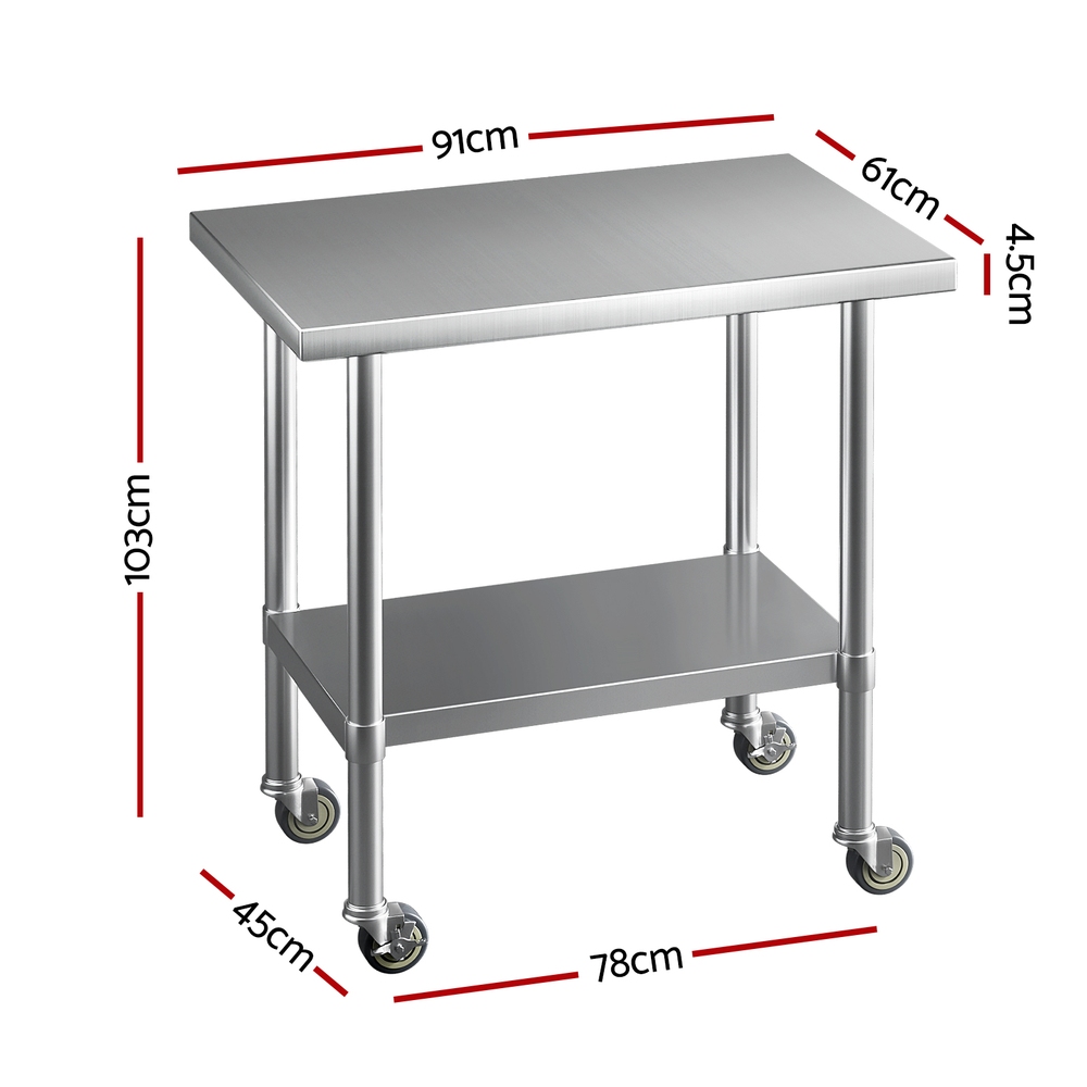 Cefito Stainless Steel Kitchen Benches Work Bench Wheels 91X61CM 430