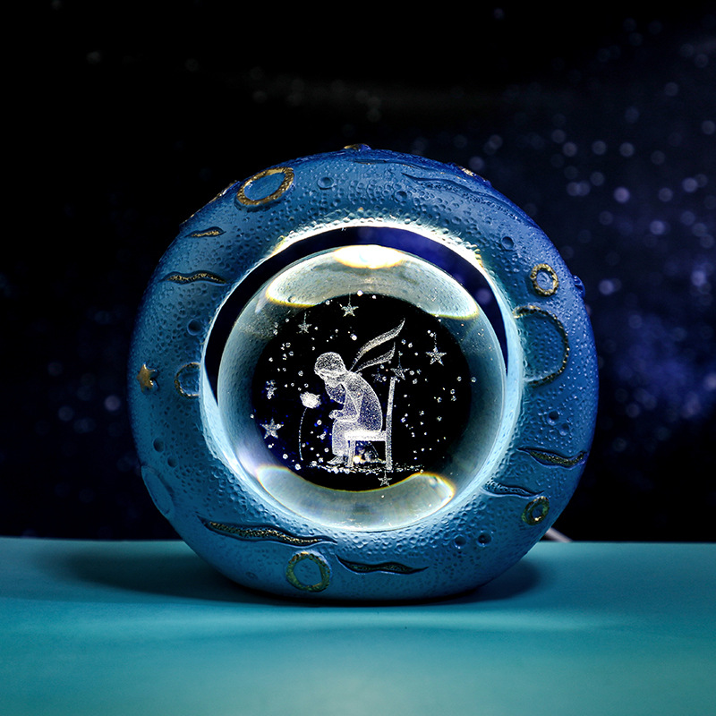 Celestial Ring LED Crystal Ball Lamp – 3D Engraving, Unique Gift (Little Prince Rose)