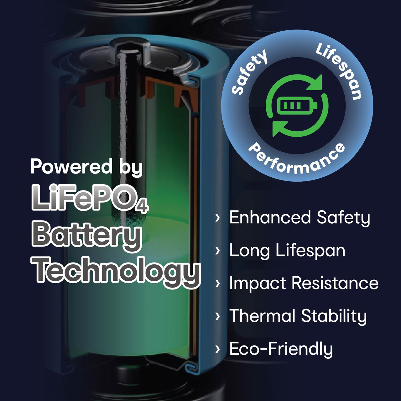 LiFePOâ‚„ technology delivers up to 5000 charge cycles* far beyond standard lithium-ion. Thats years of daily use with less wear, fewer replacements, and power you can count on.