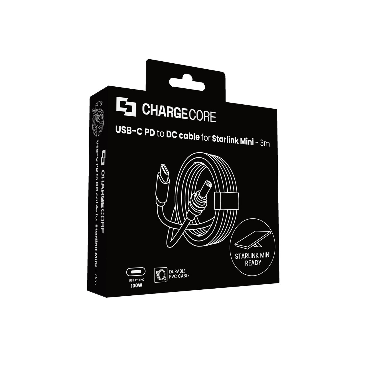 The ChargeCore 3m USB-C to DC 100W Power Cable is designed specifically for powering the Starlink Mini, delivering a reliable connection with the reach you need. Whether youre on the road, at a campsite, or setting up in your backyard, this cable ensures your satellite internet stays powered with stable performance.