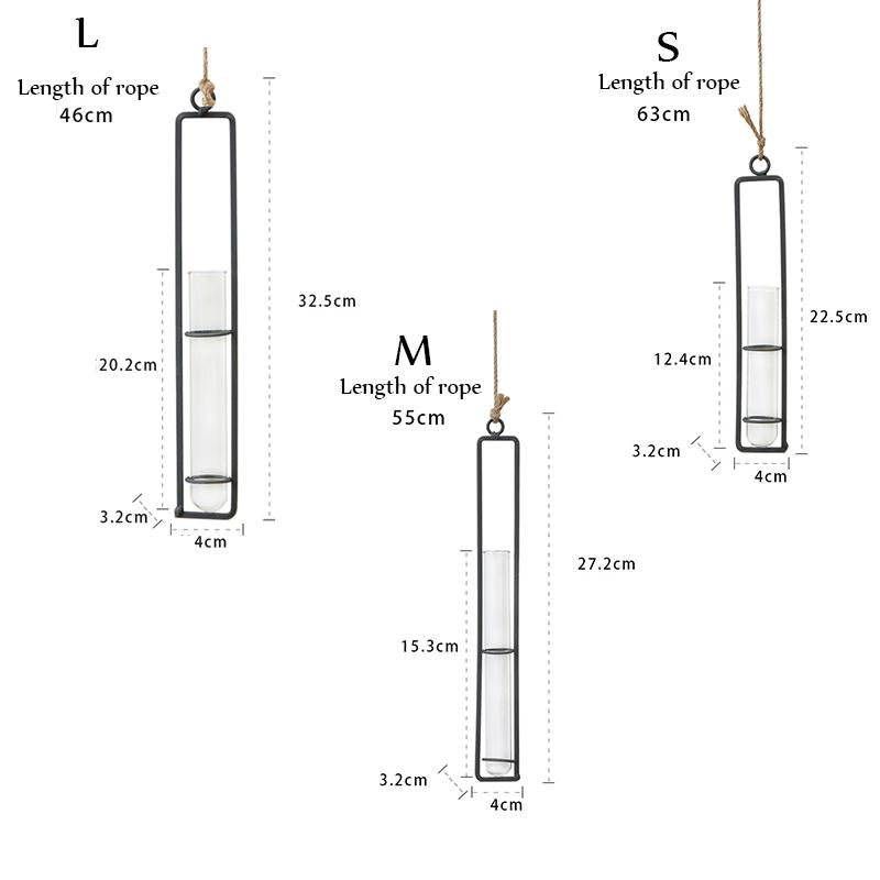 • 1 x Home Gardening Iron Art Charm Glass Wall Hanging Plant Bonsai Decorative Accessories – Size S