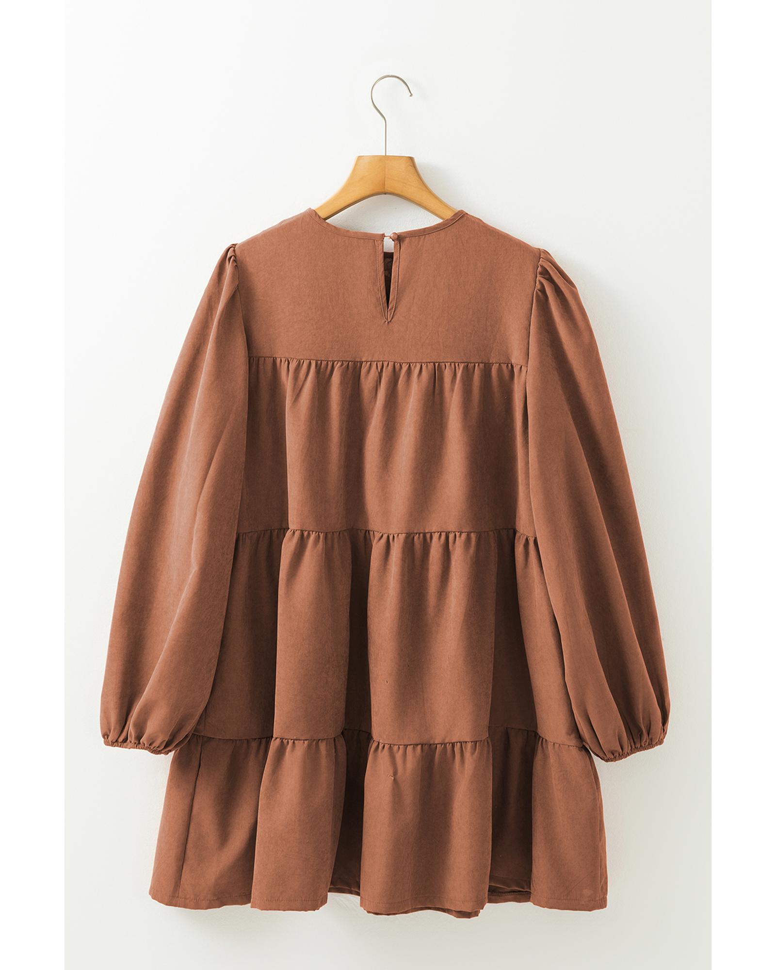 Chestnut Floral Lace Crochet Tiered Ruffled Mini Dress - S