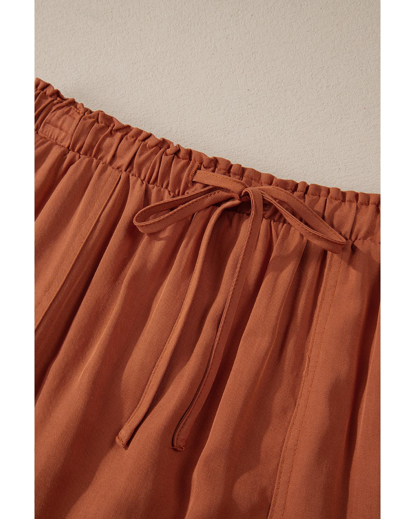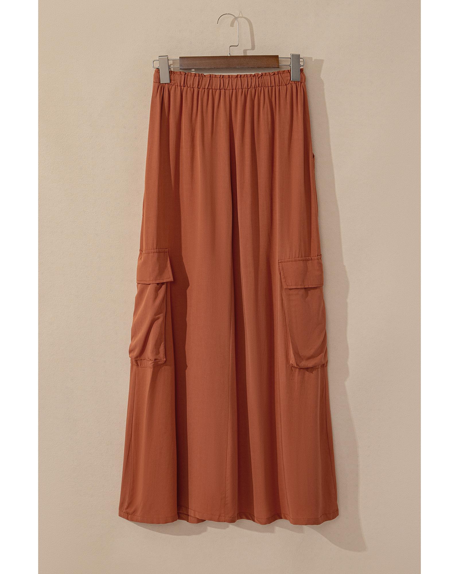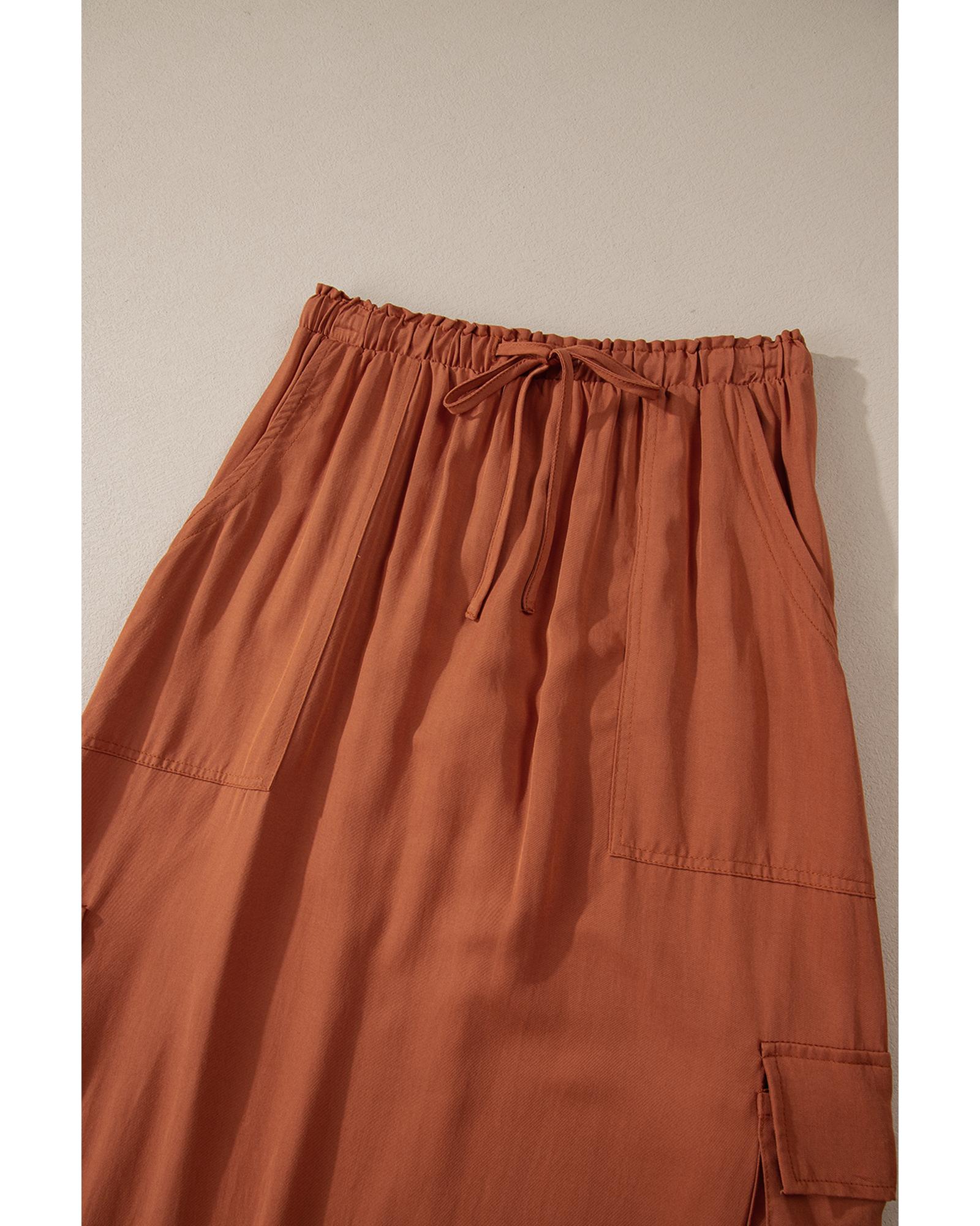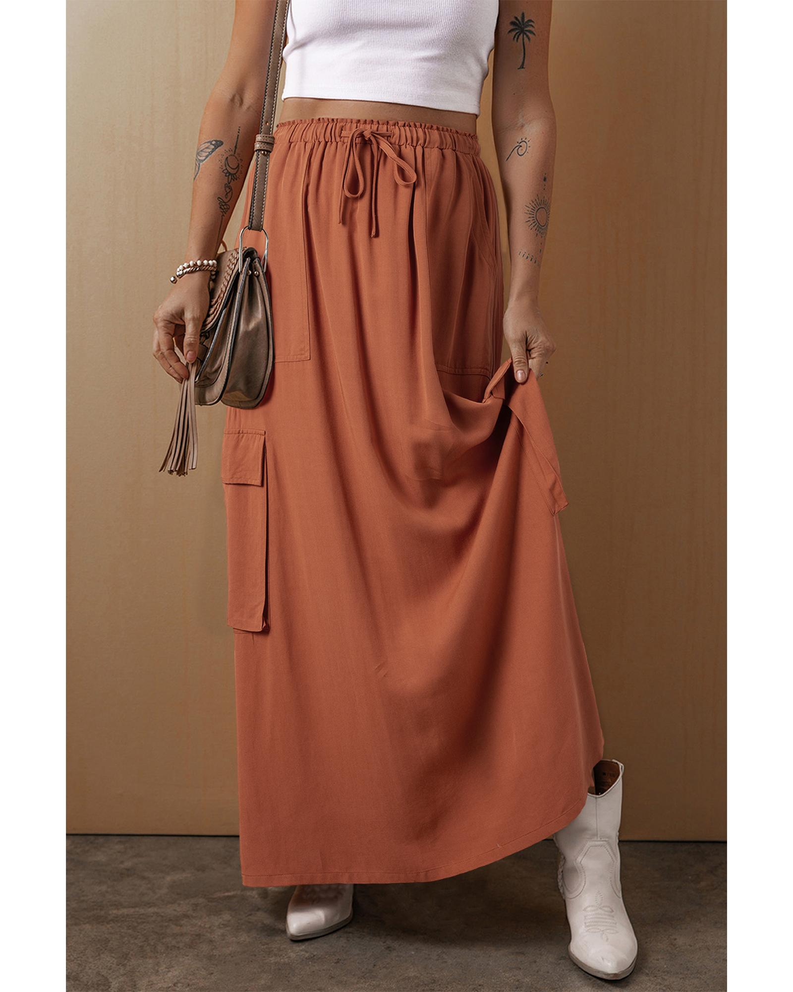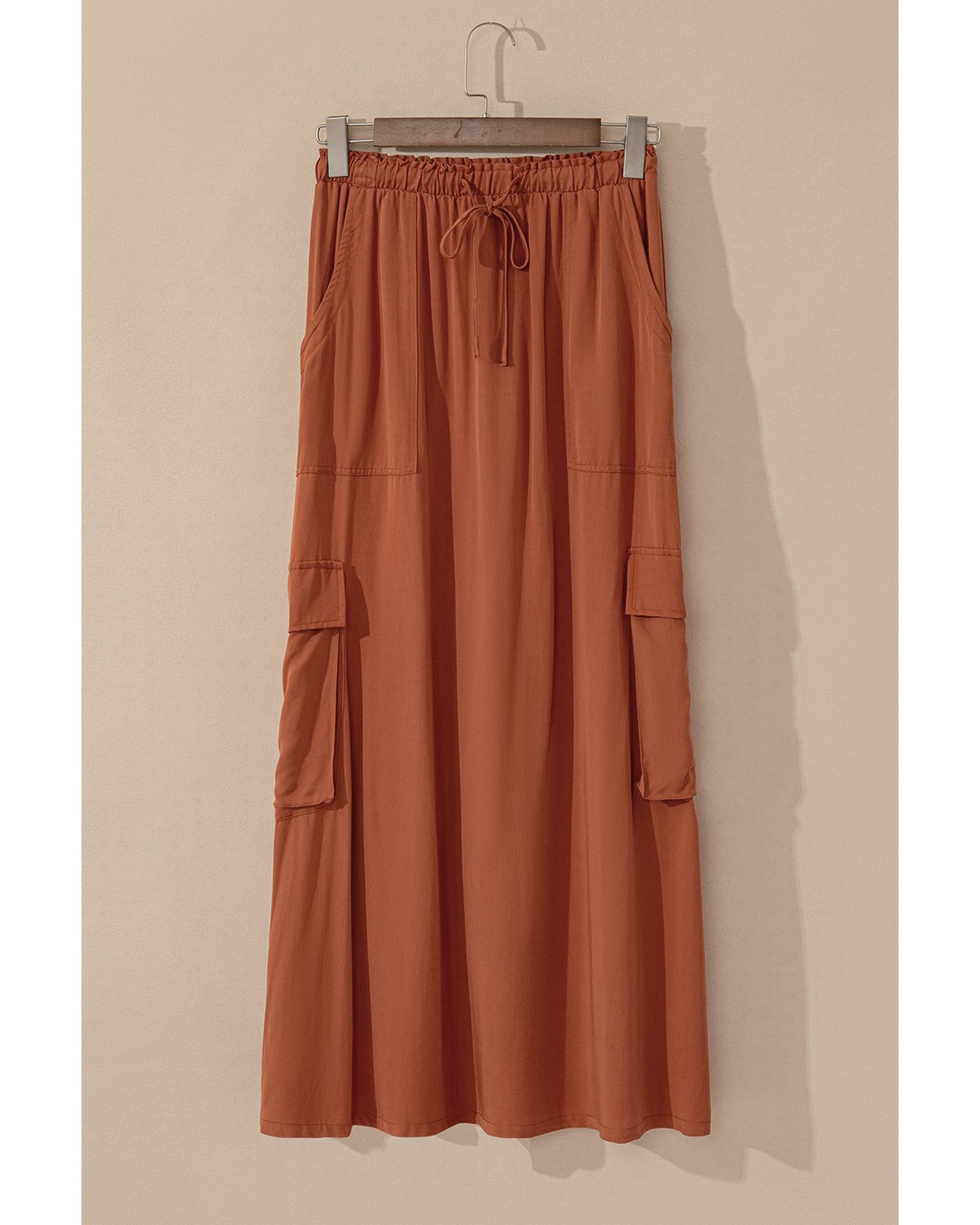 Chestnut Mineral Wash Cargo Pocket Drawstring Waist Maxi Skirt – M