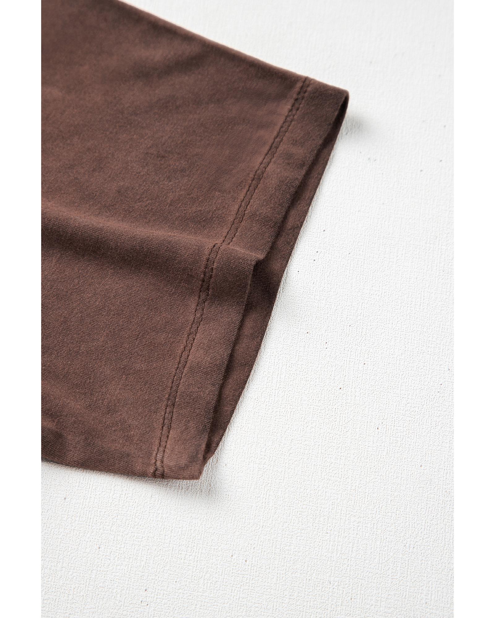Chestnut Mineral Wash Criss Cross V Neck Casual T Shirt – L