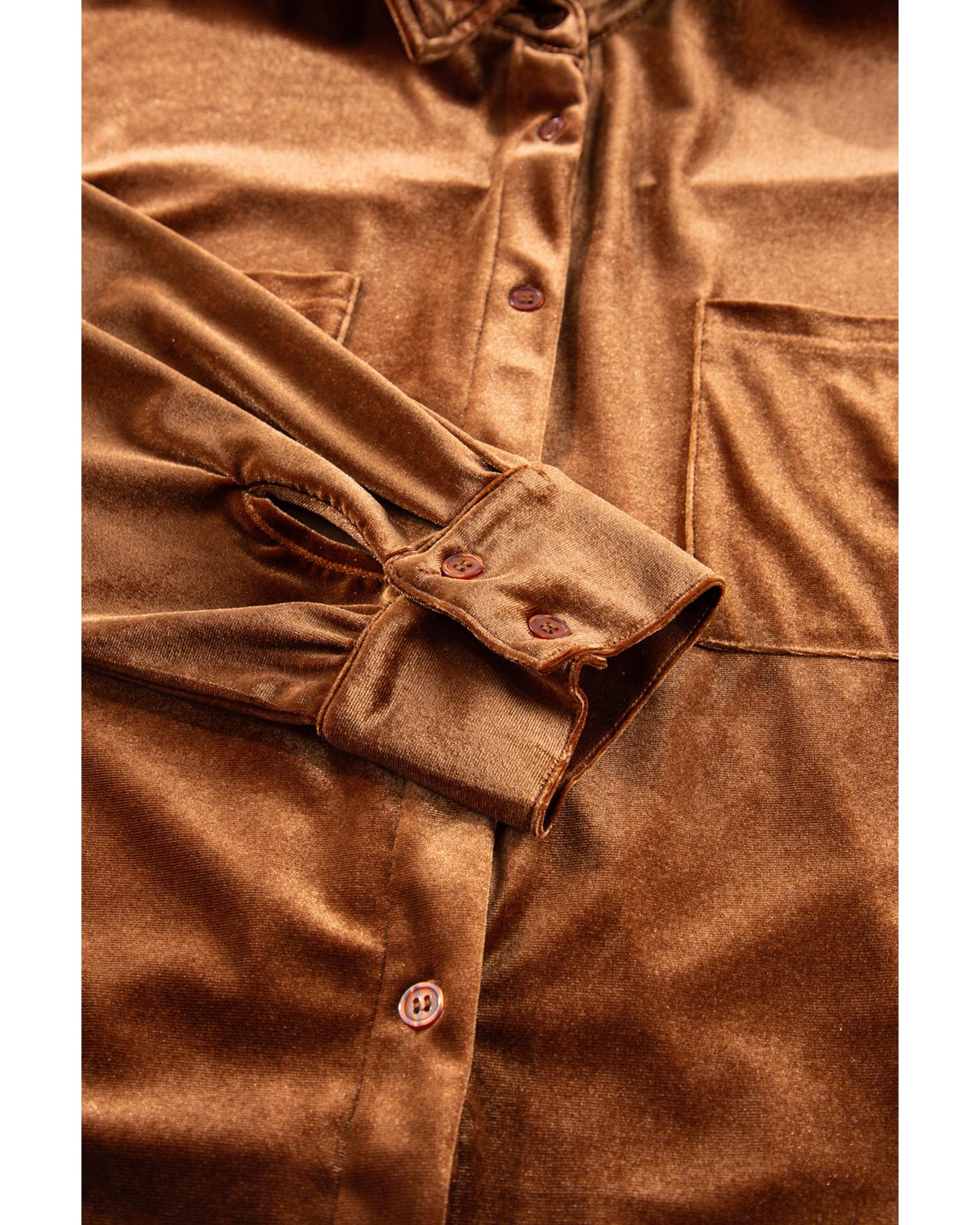 Chestnut Plus Size Velvet Chest Pocket Drop Shoulder Shirt – 3X