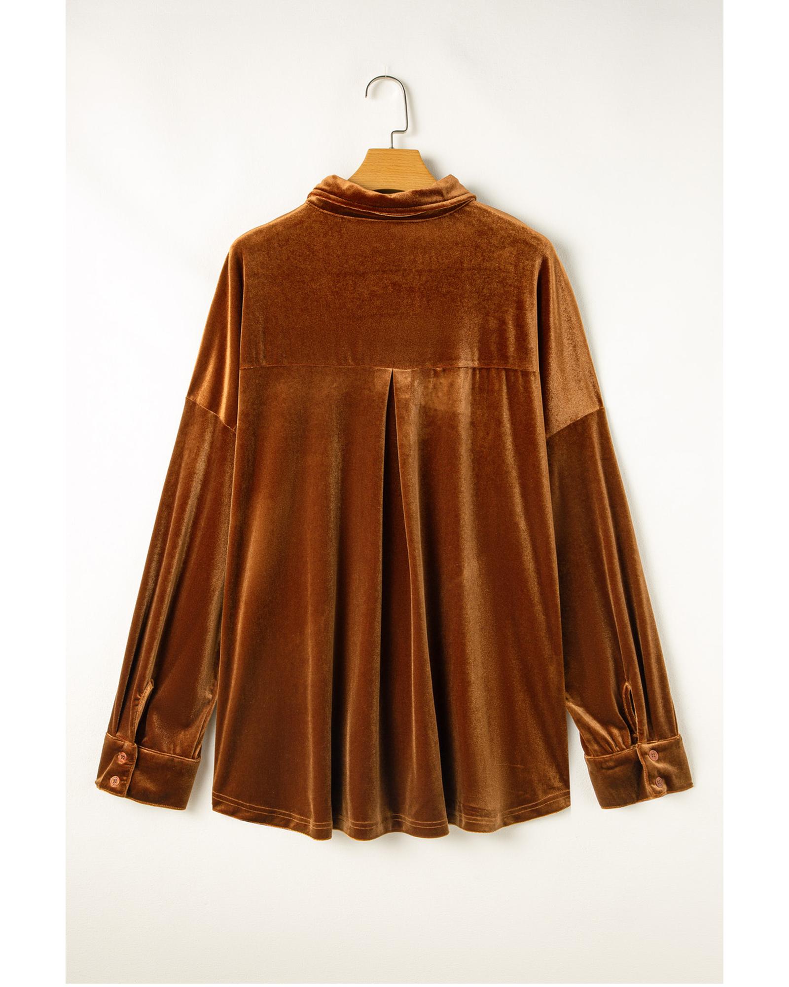 Chestnut Plus Size Velvet Chest Pocket Drop Shoulder Shirt – 4X