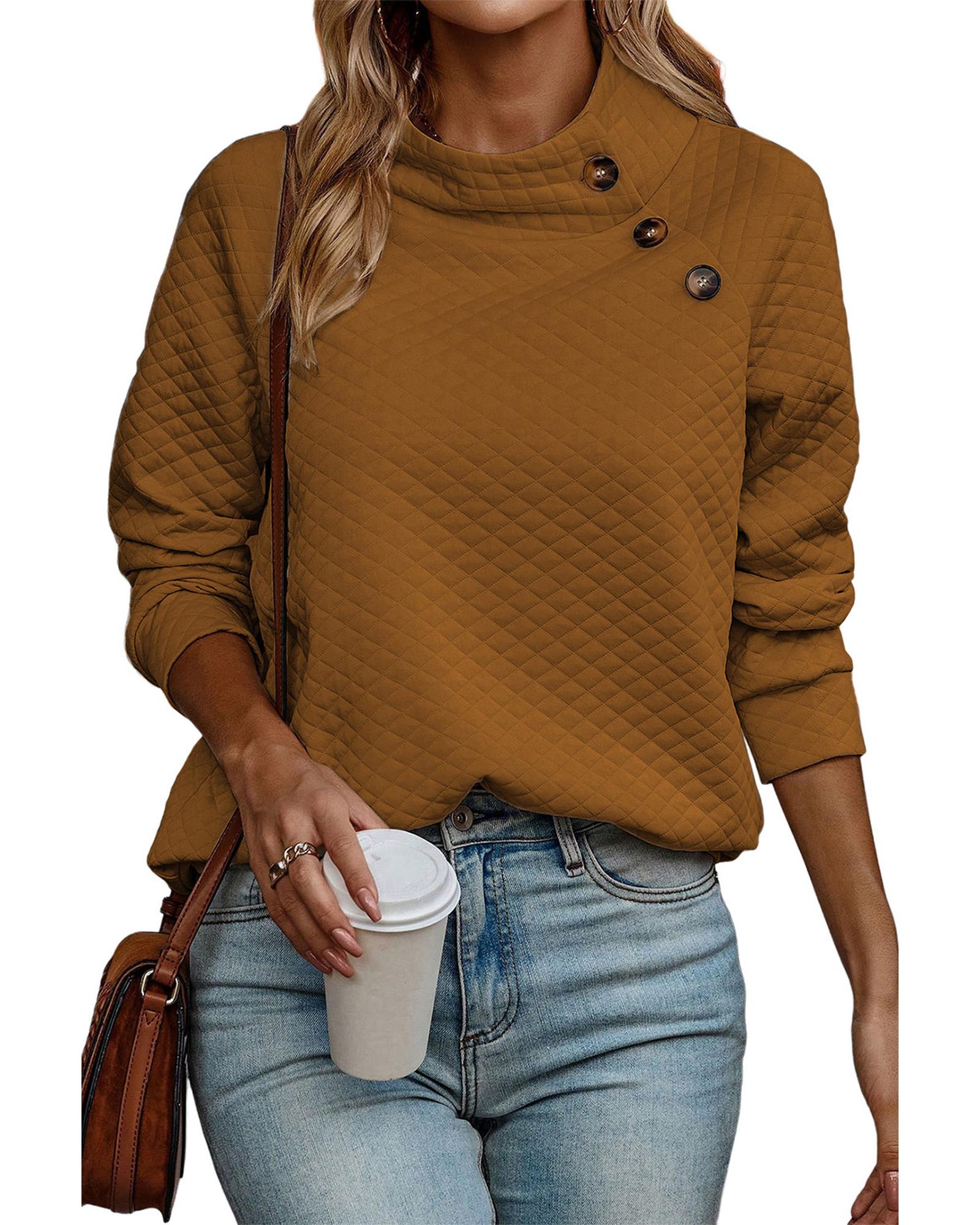 Chestnut Quilted Buttoned Neckline Stand Neck Pullover Sweatshirt – XL