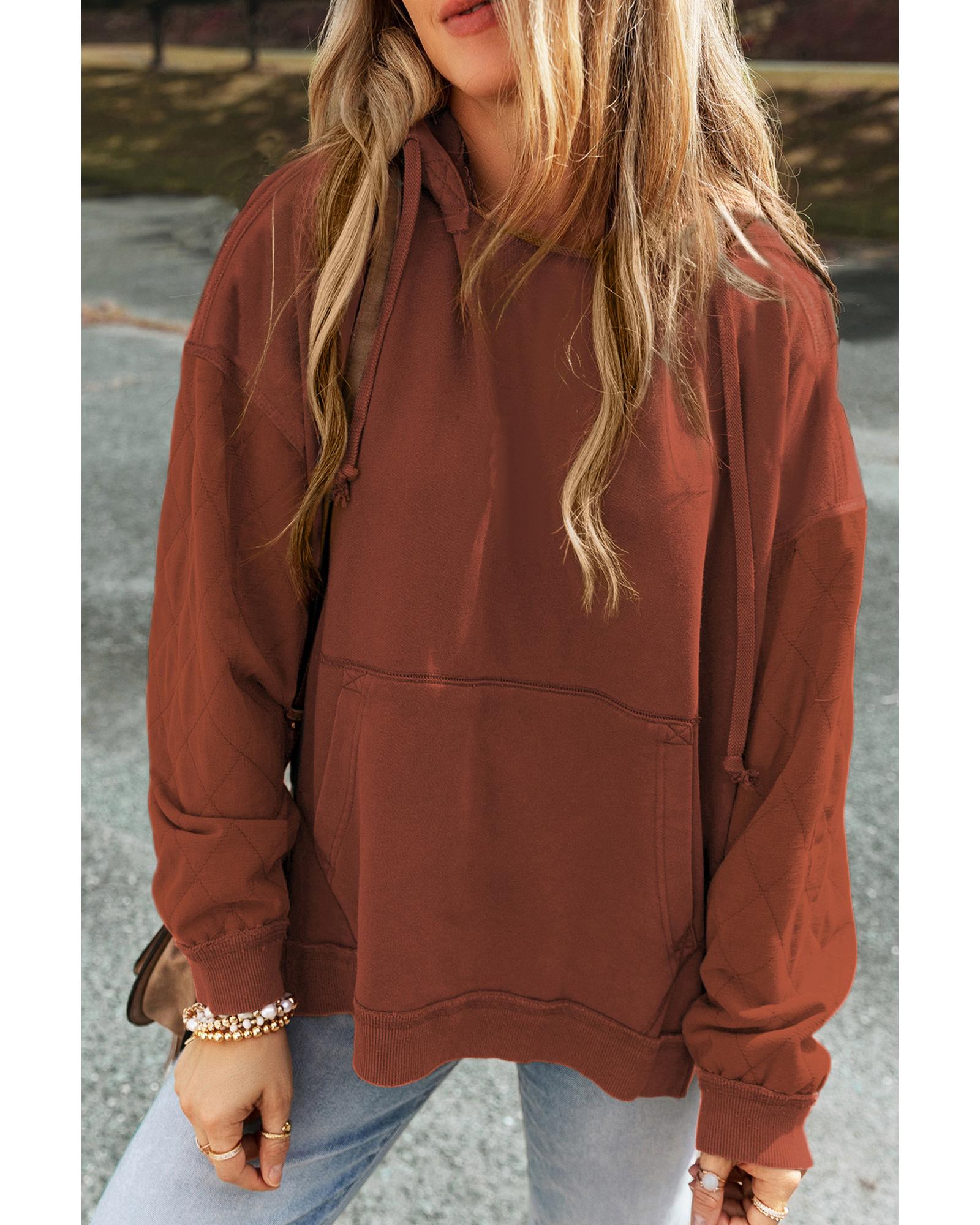 Chestnut Quilted Patchwork Exposed Seam Hoodie – S