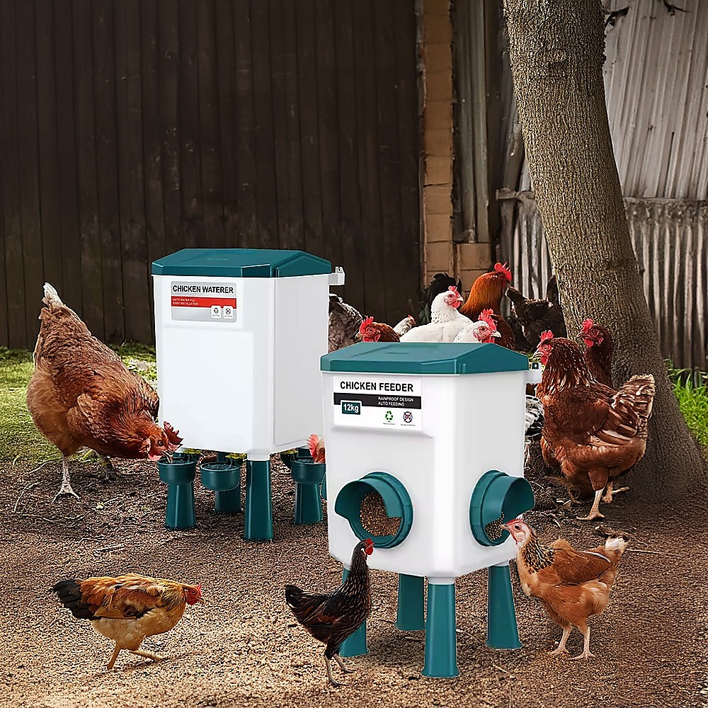 With generous capacities of 11L of water and 12kg of feed, these accessories cater to the needs of up to 30 chicks and 20 adult chickens, providing a sustainable and efficient solution for poultry care.