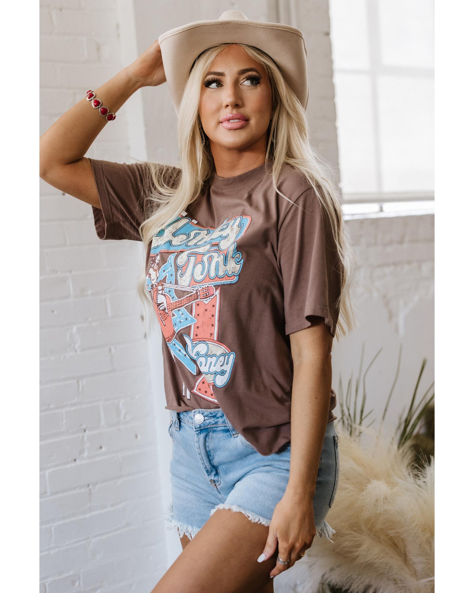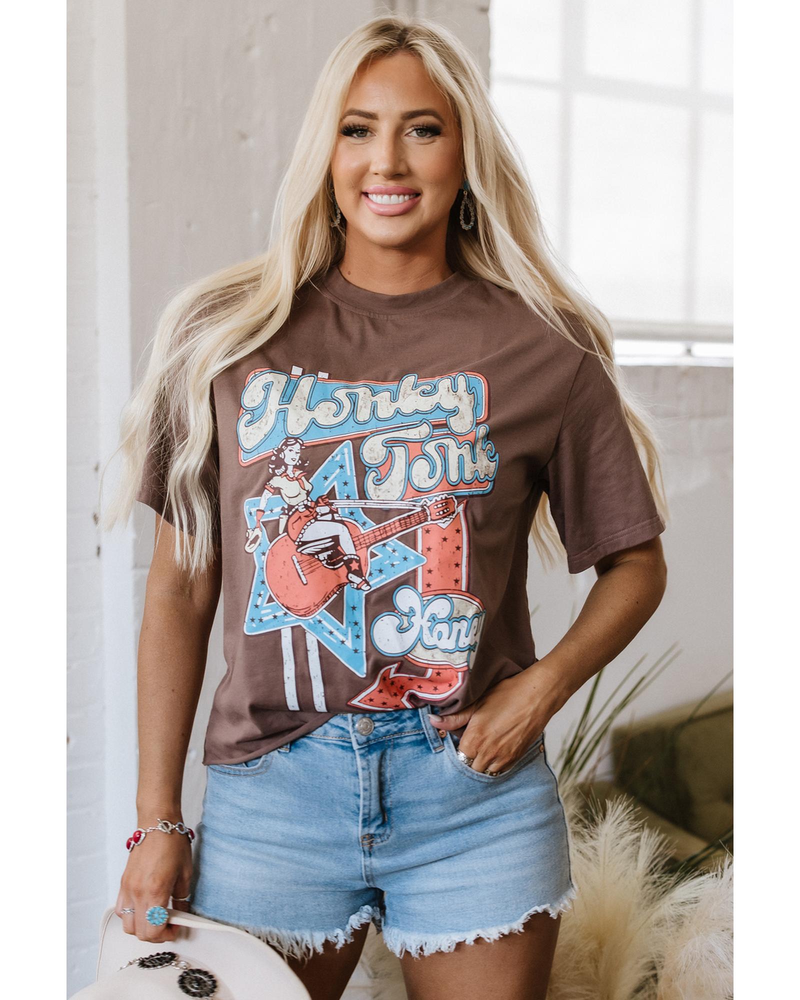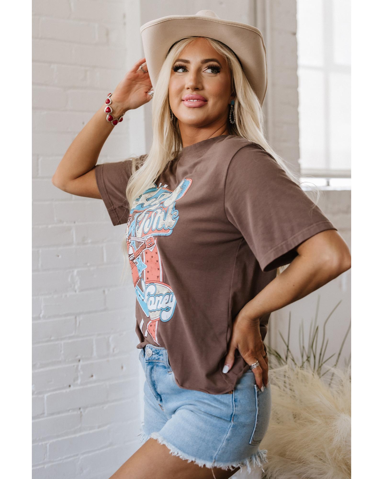 Chicory Coffee Honky Tonk Honey Graphic Crew Neck Western Fashion Tee – L
