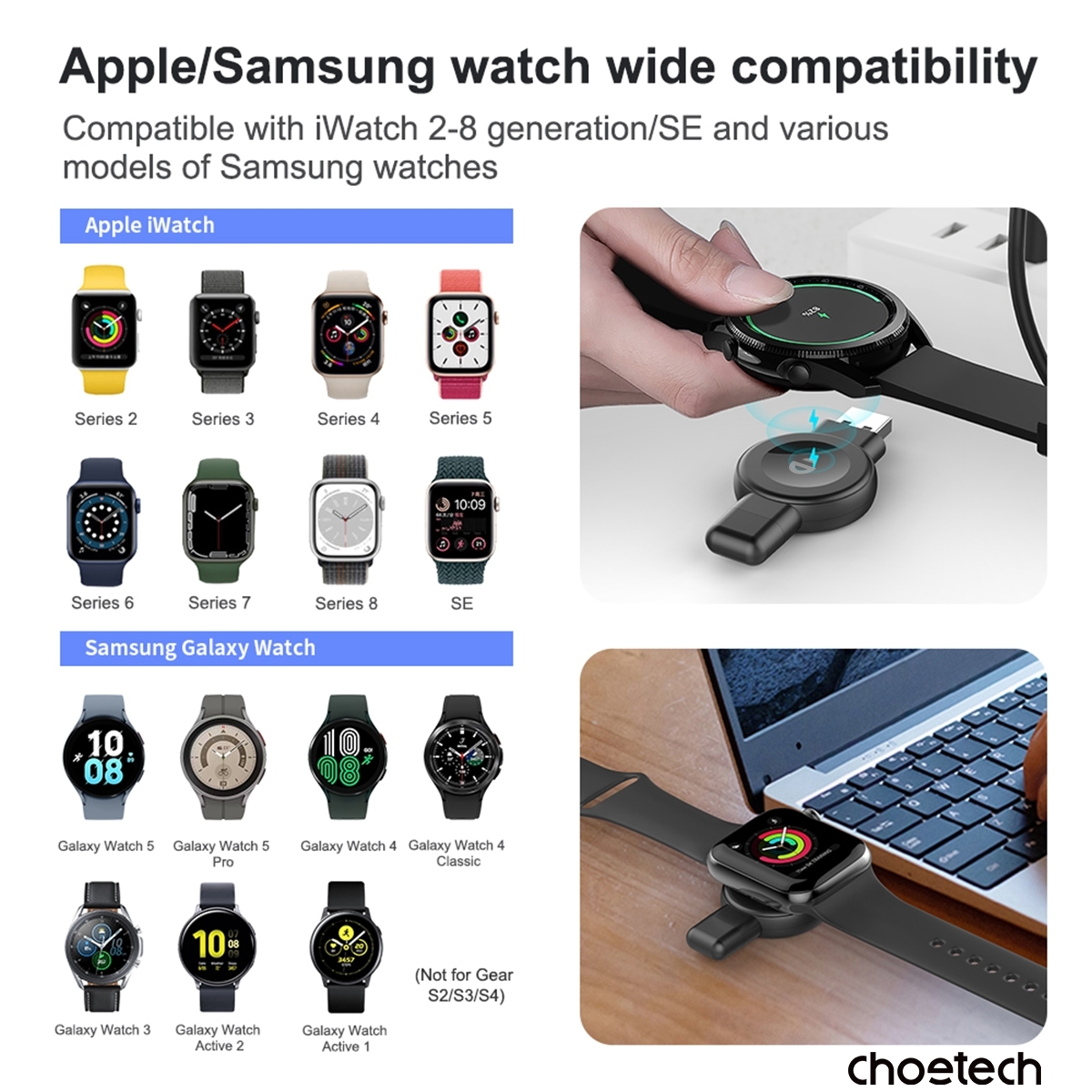 CHOETECH T606-F USB-A +USB-C Magnetic Charger for Samsung & Apple Watch