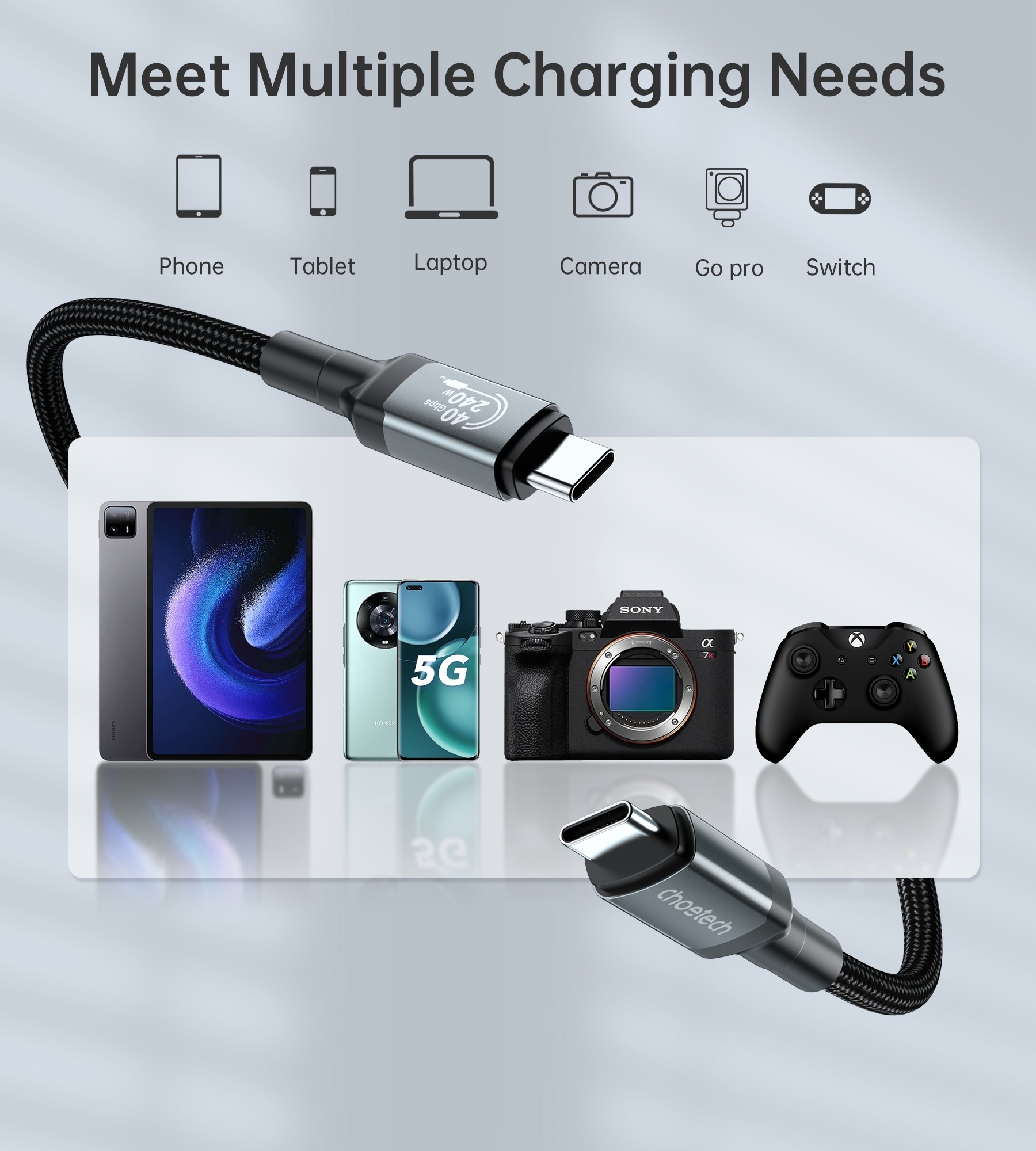 CHOETECH XCC-1040 USB-C M to M 240W Super Fast Speed Gen3 Cable 1.2M