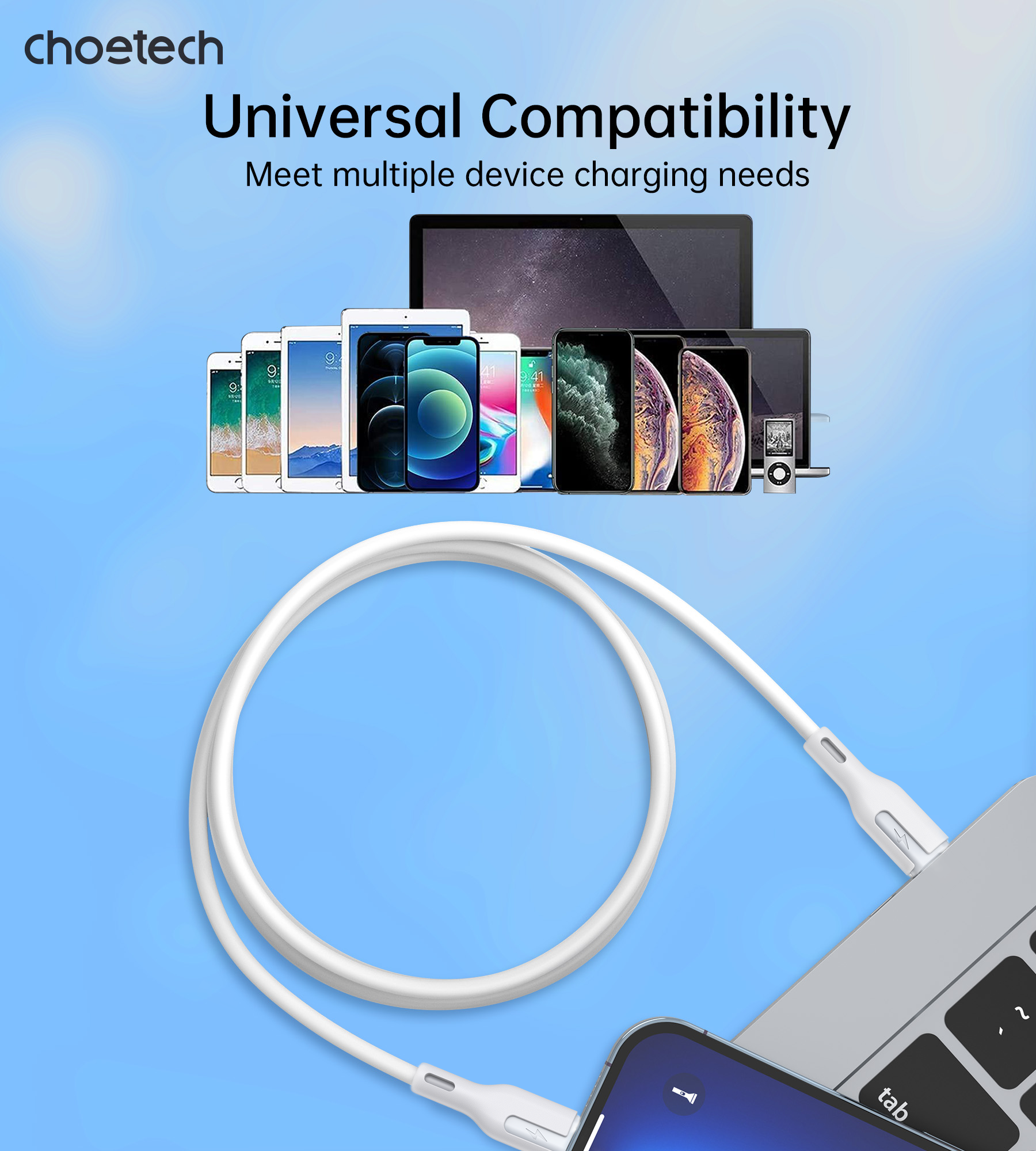 CHOETECH XCL-0002 Silicone USB-C to L Cable 1m White