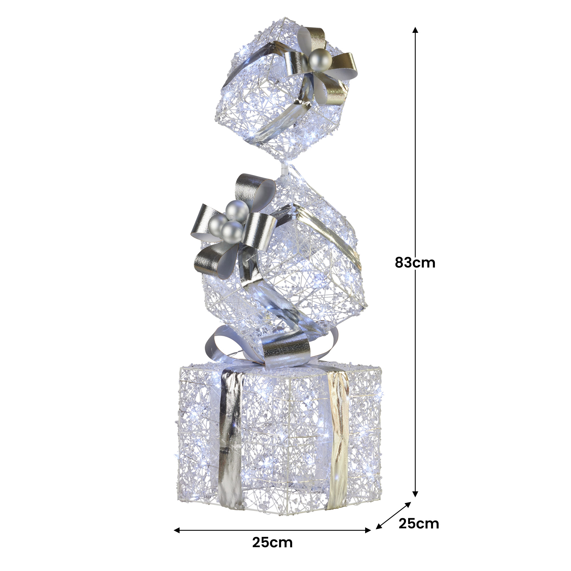 Christabelle 83cm Triple Christmas Silver Giftbox Stack Display with Lights
