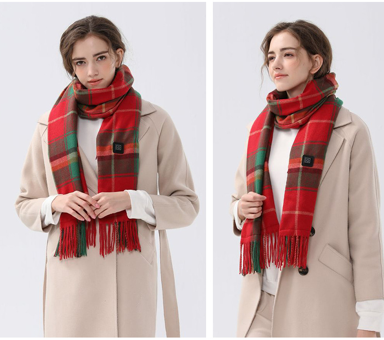 Christmas Plaid Heated Scarf – Electric Warming Scarf, Winter Outdoor Essential (Without power bank)