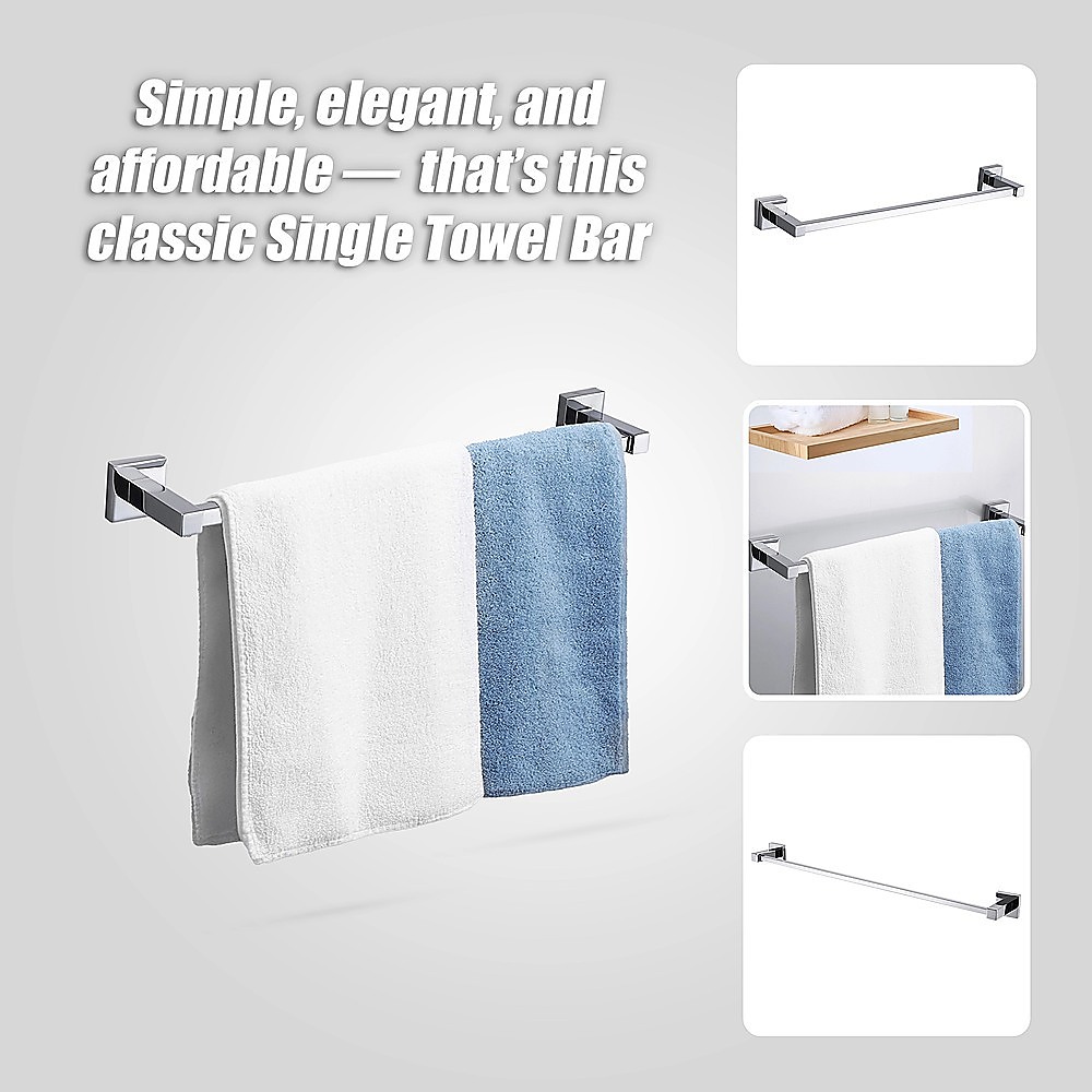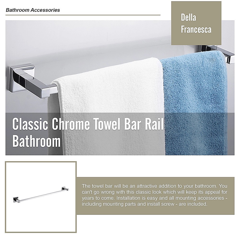 The towel bar will be an attractive addition to your bathroom. You can't go wrong with this classic look which will keep its appeal for years to come. Installation is easy and all mounting accessories – including mounting parts and install screw – are included. The classic chrome-finished Single Towel Bar comes with an owners manual to guide you through installation and provide important care instructions.