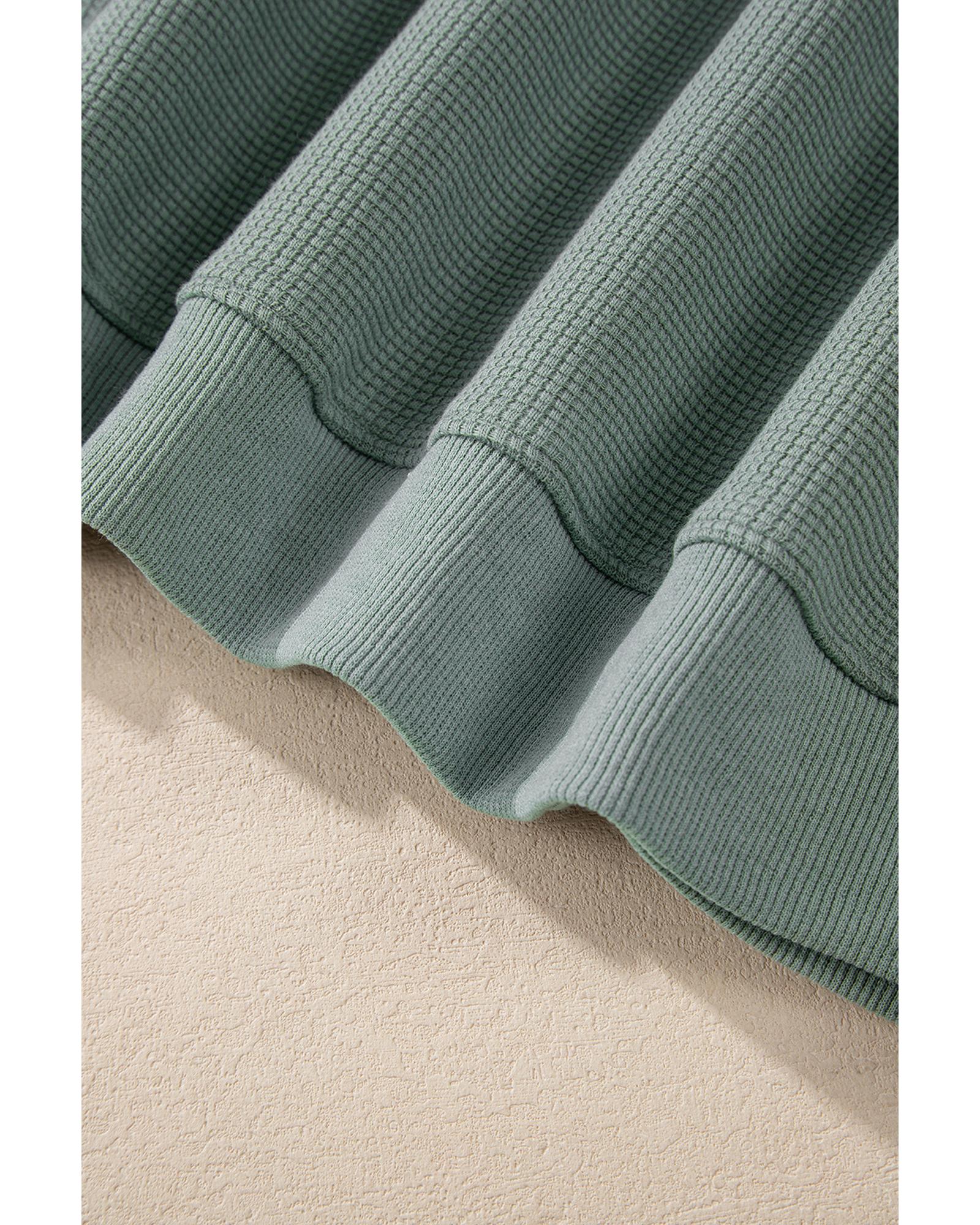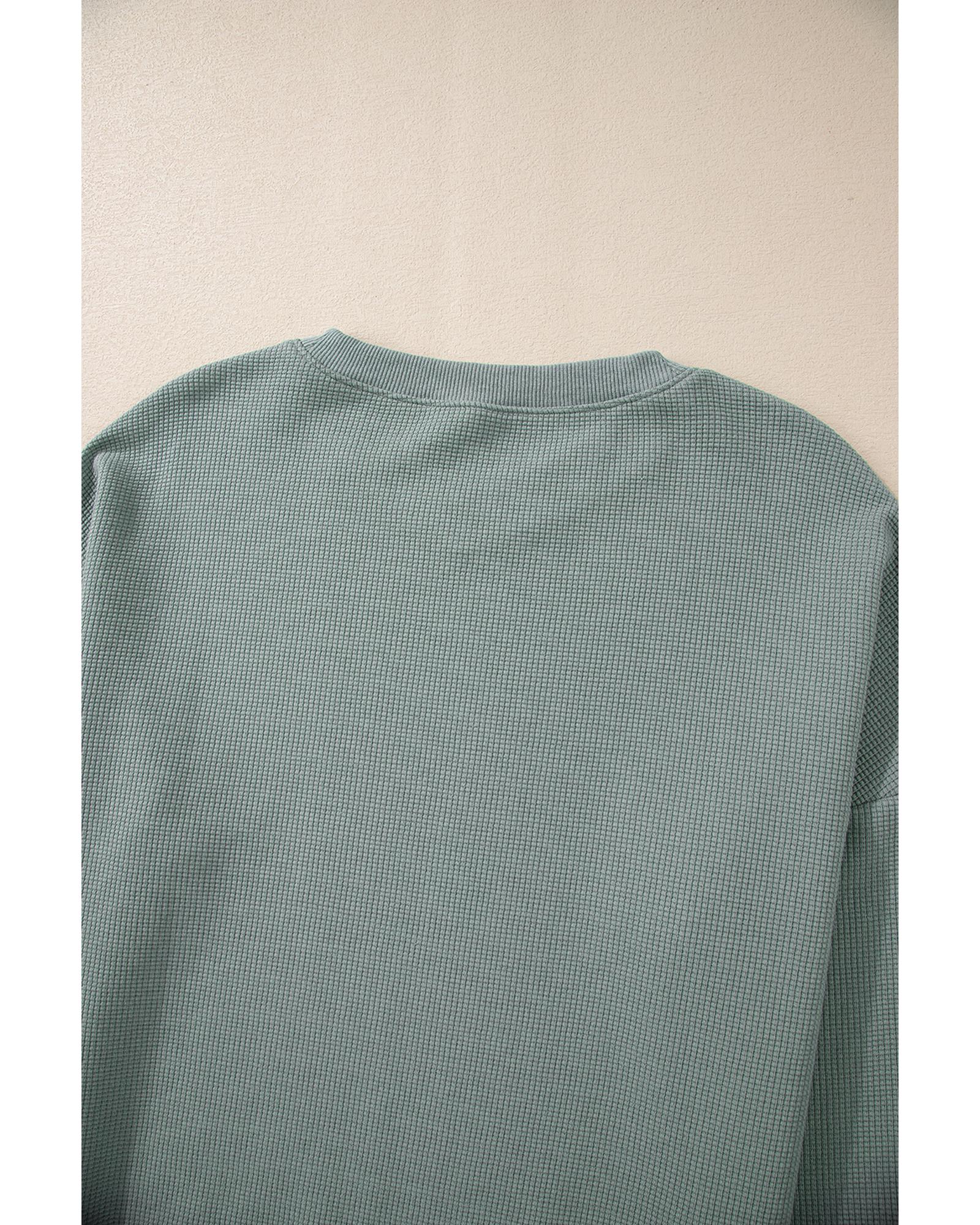 Clearly Aqua Waffle Knit Drop Shoulder V Neck Top – L