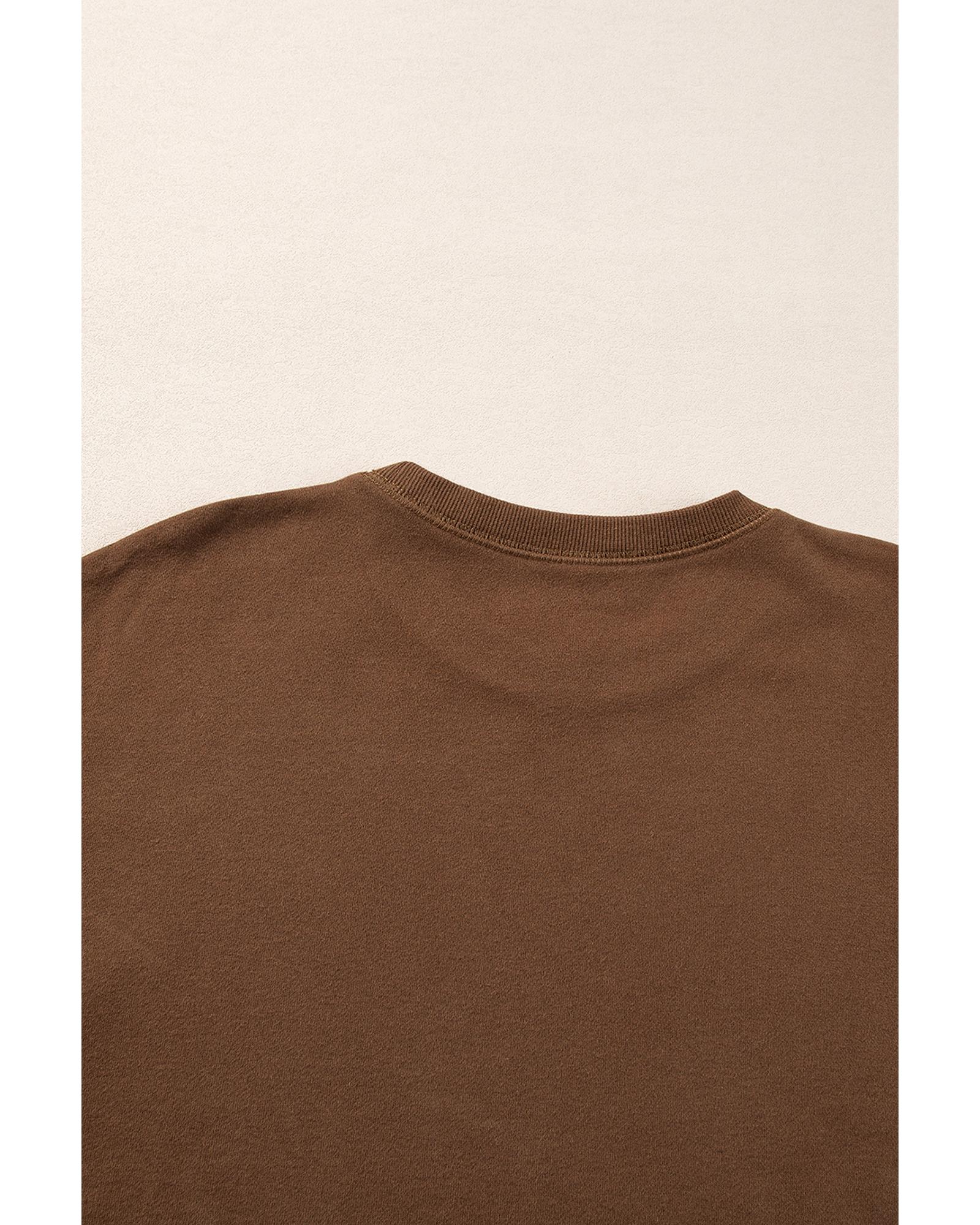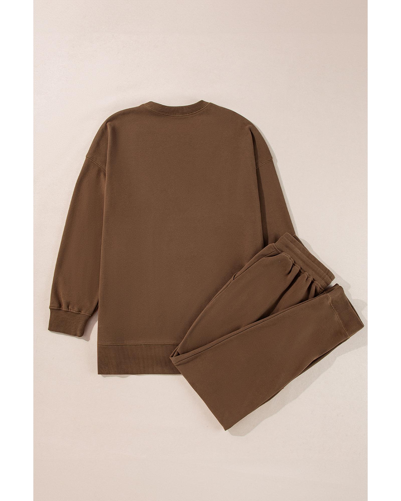 Coffee Solid Color High Low Pullover and Skinny Pants Set – M