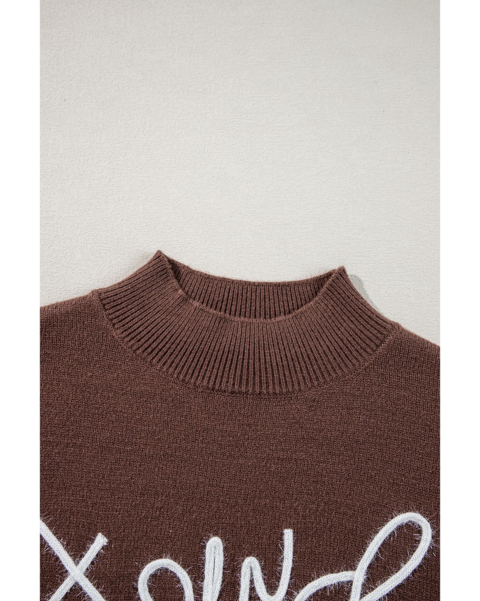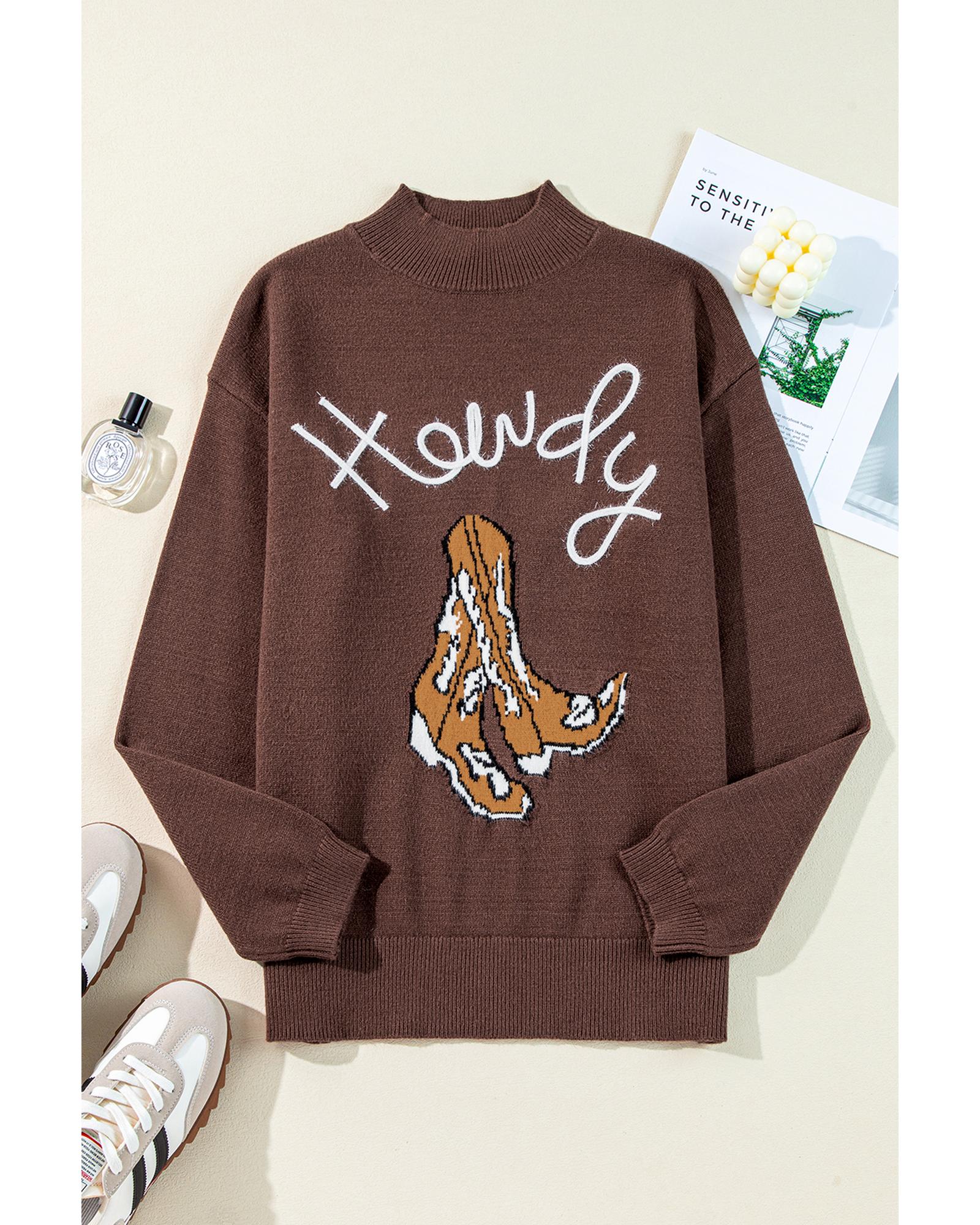 Coffee Western Howdy Boot Graphic High Neck Sweater – L